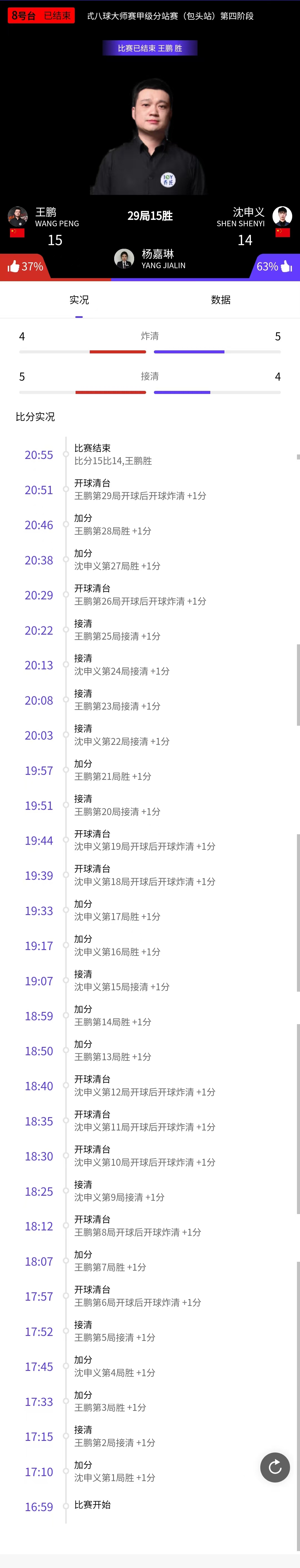 王鹏 15-14 沈申义 详情