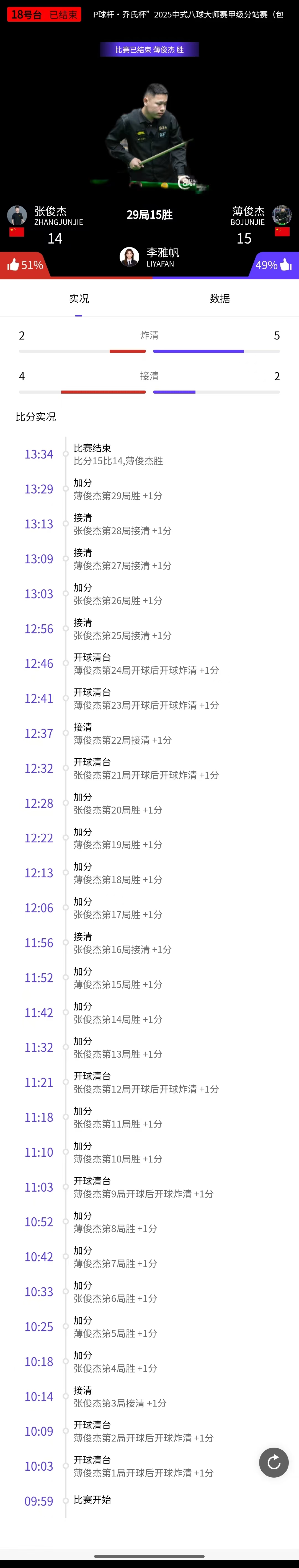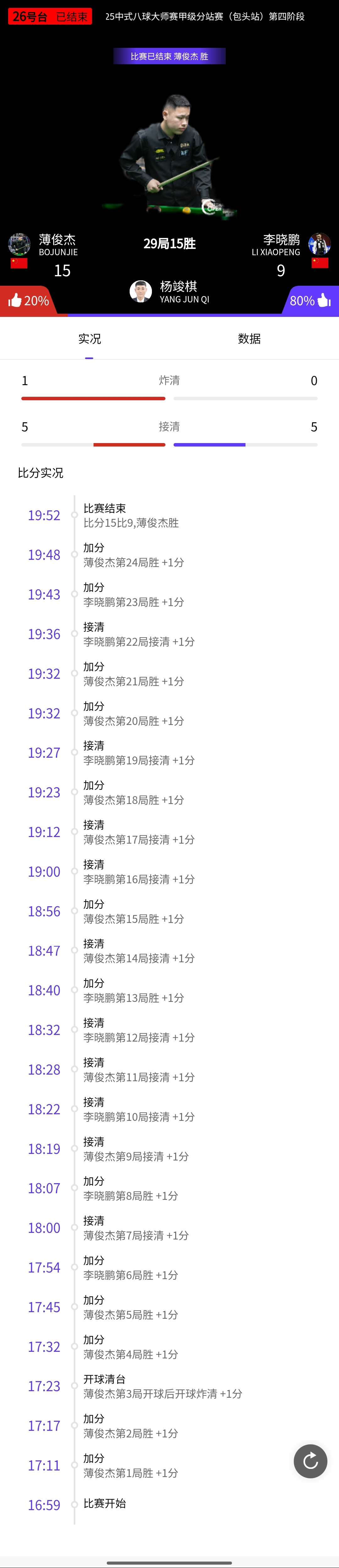 薄俊杰 15-9 李晓鹏 详情