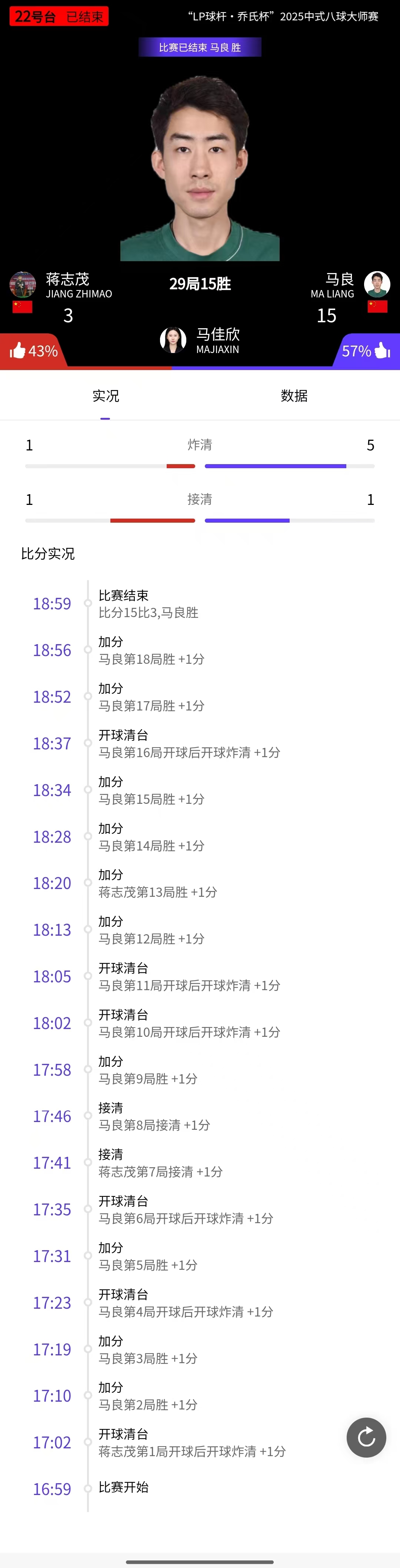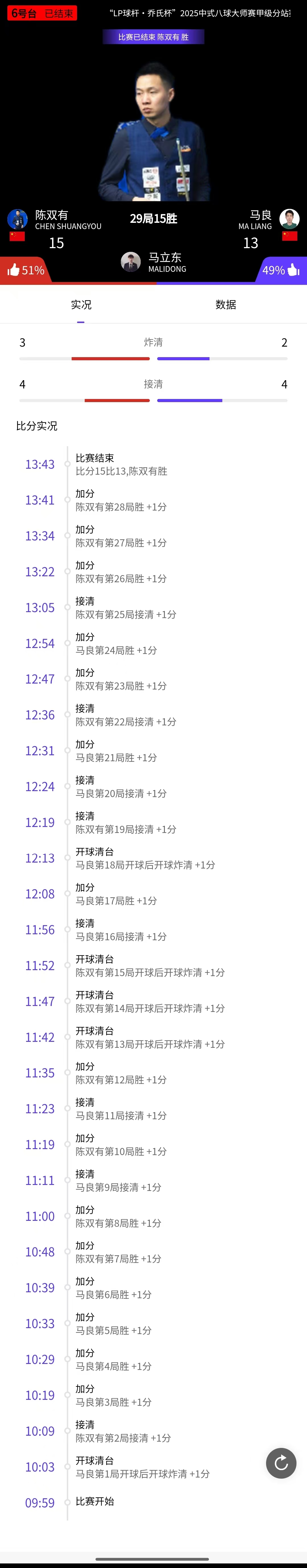 陈双有 15-13 马良 详情