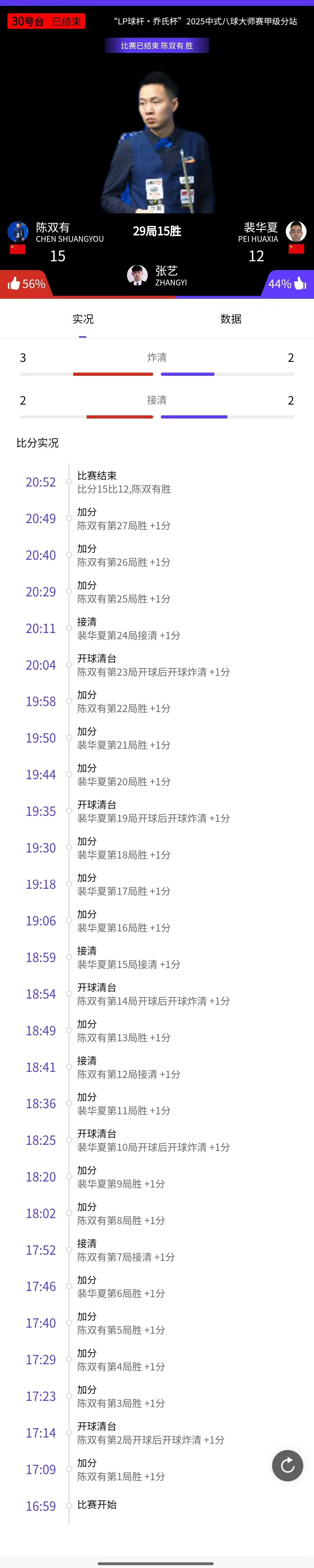 陈双有 15-12 裴华夏 详情