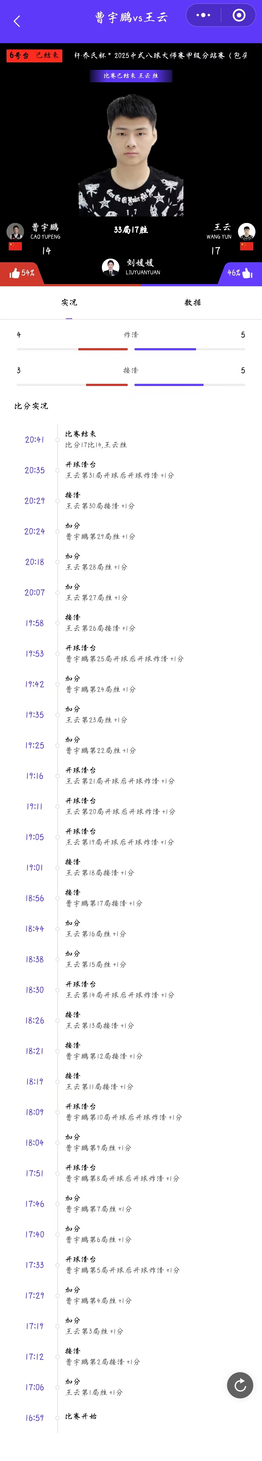 曹宇鹏 14-17 王云 详情