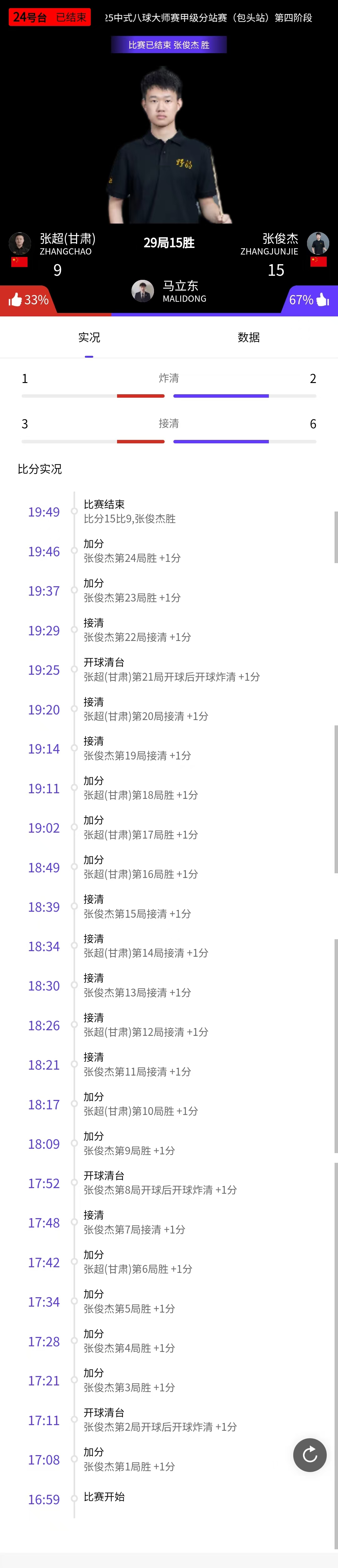 张超 9-15 张俊杰 详情