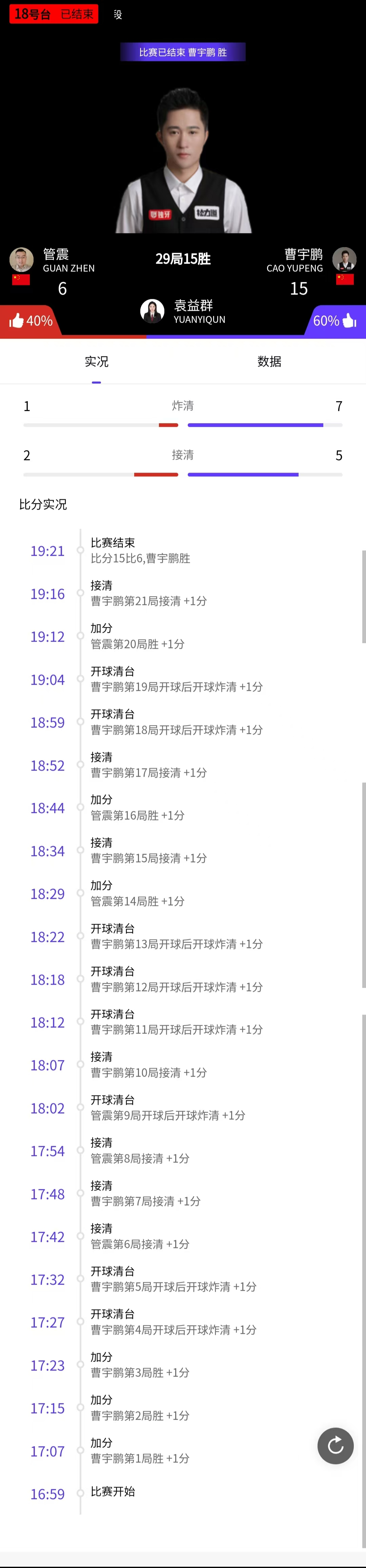 管震 6-15 曹宇鹏 详情