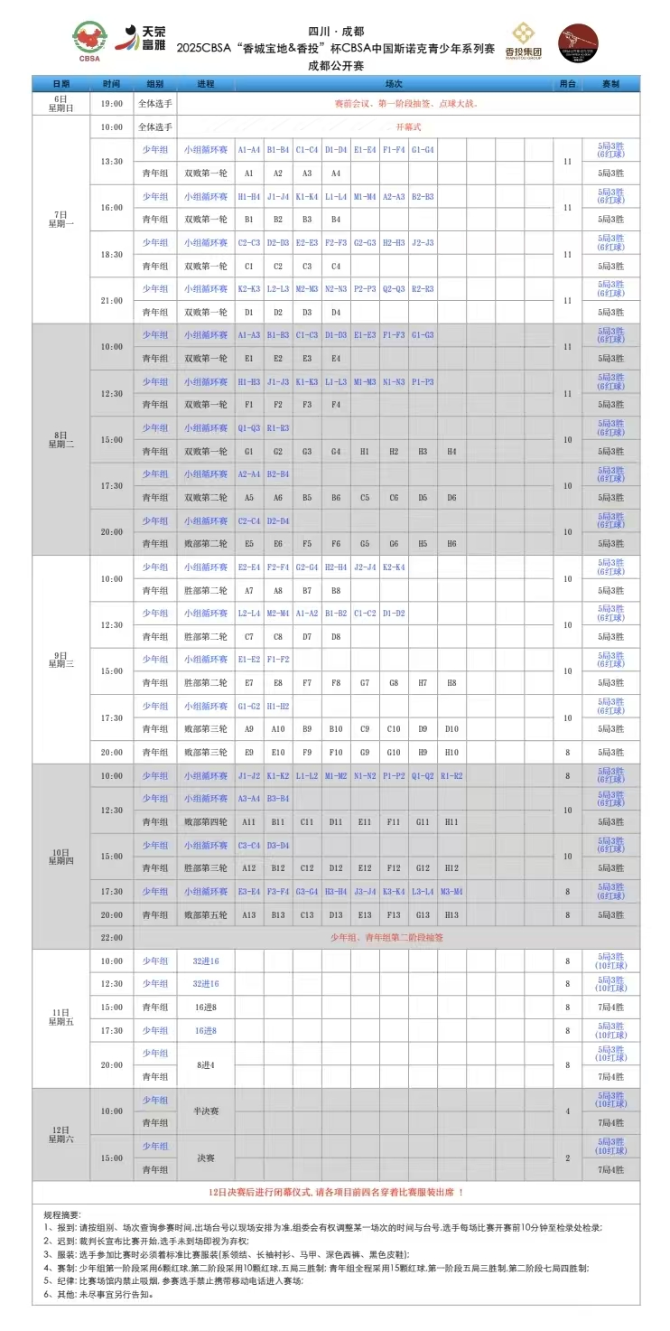 【职业斯诺克】 2025-26赛季世界职业斯诺克·赛事日历