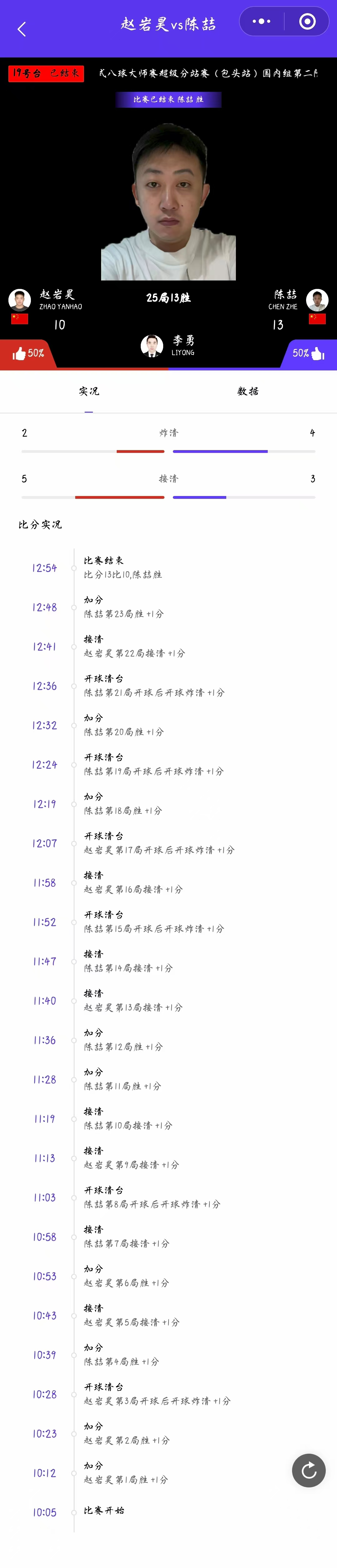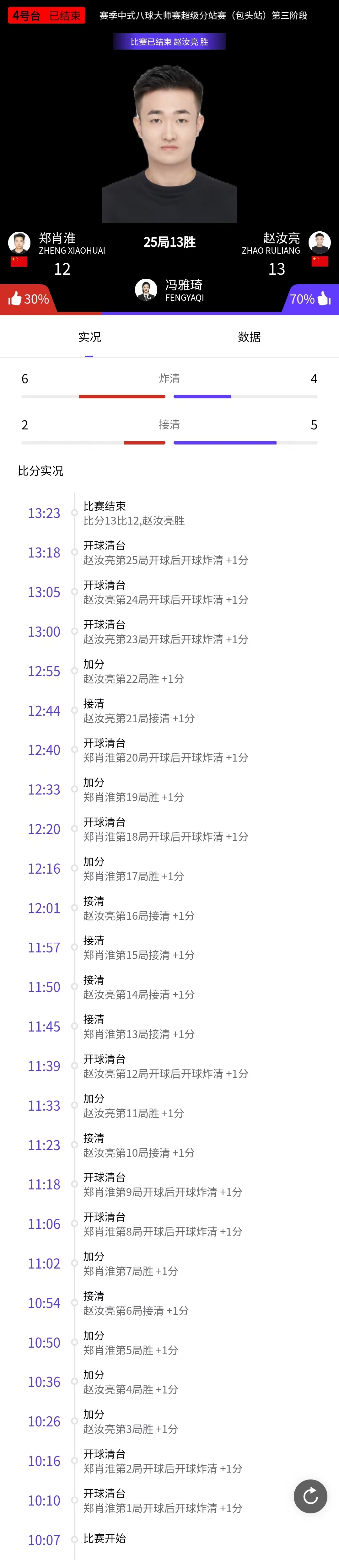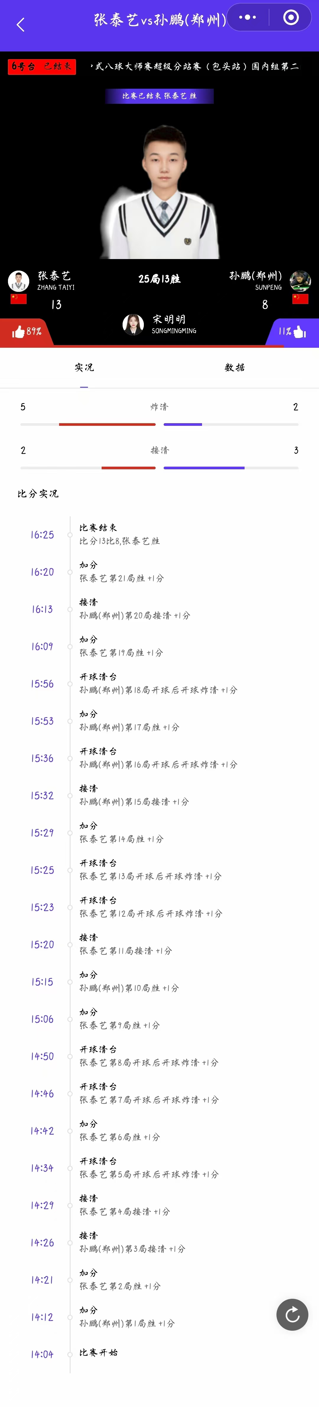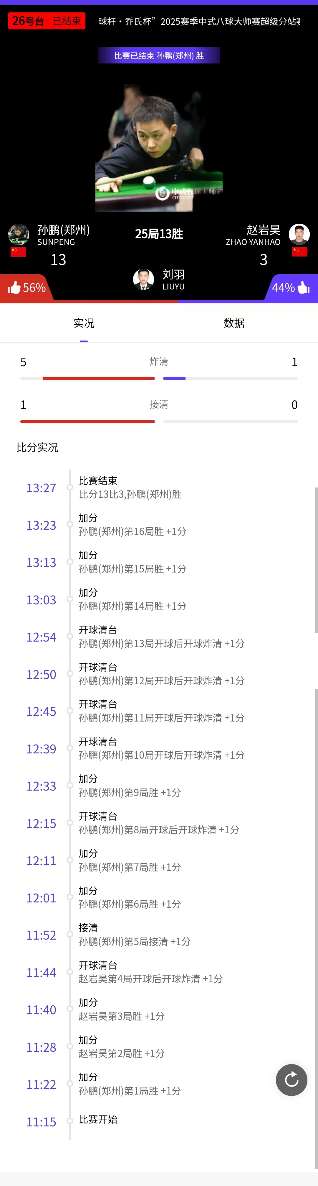 孙鹏(郑州) 13-3 赵岩昊 详情