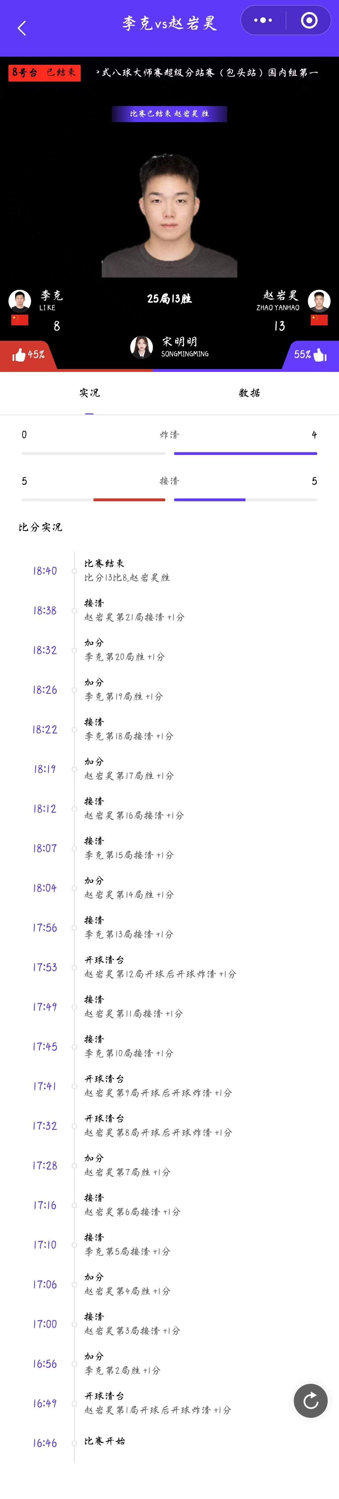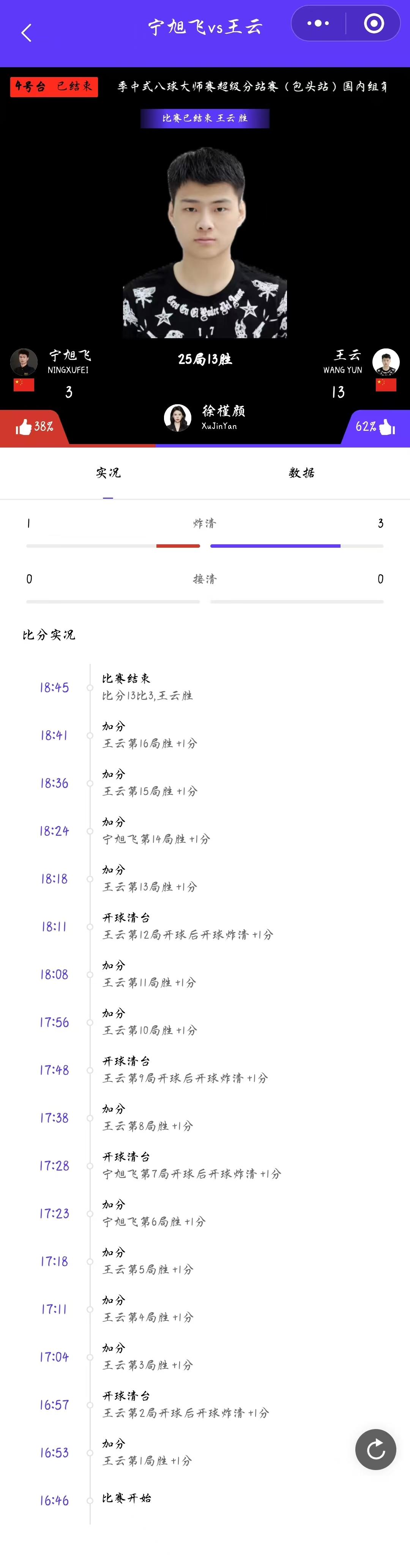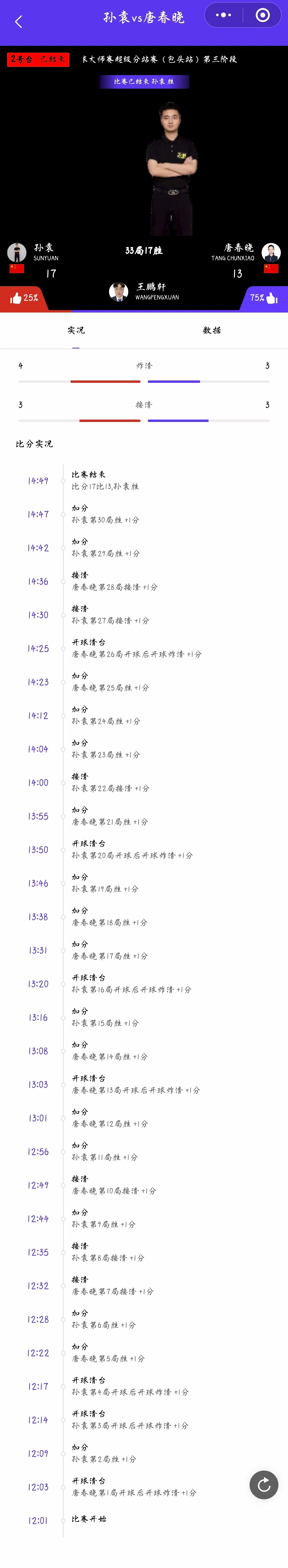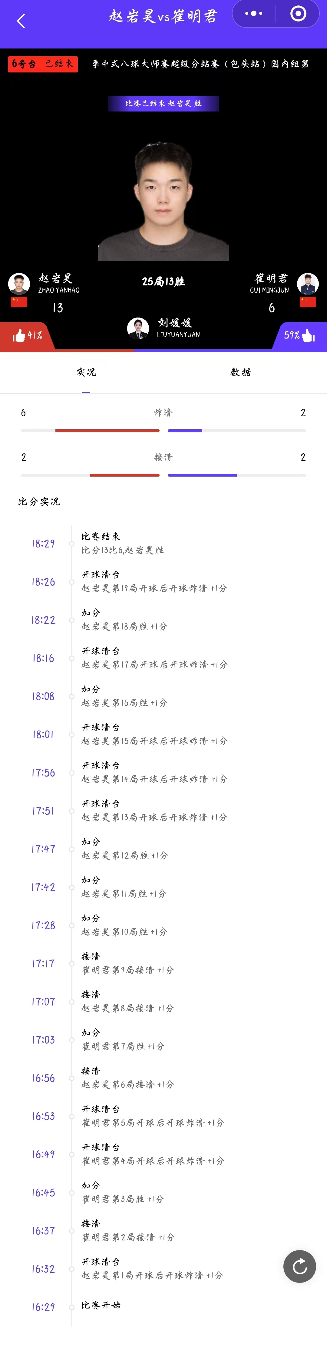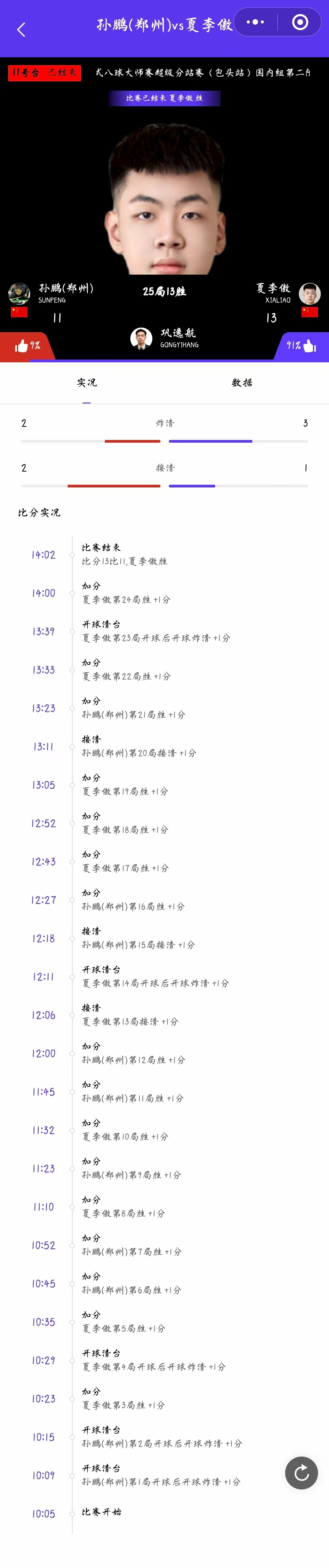 孙鹏(郑州) 13-3 赵岩昊 详情