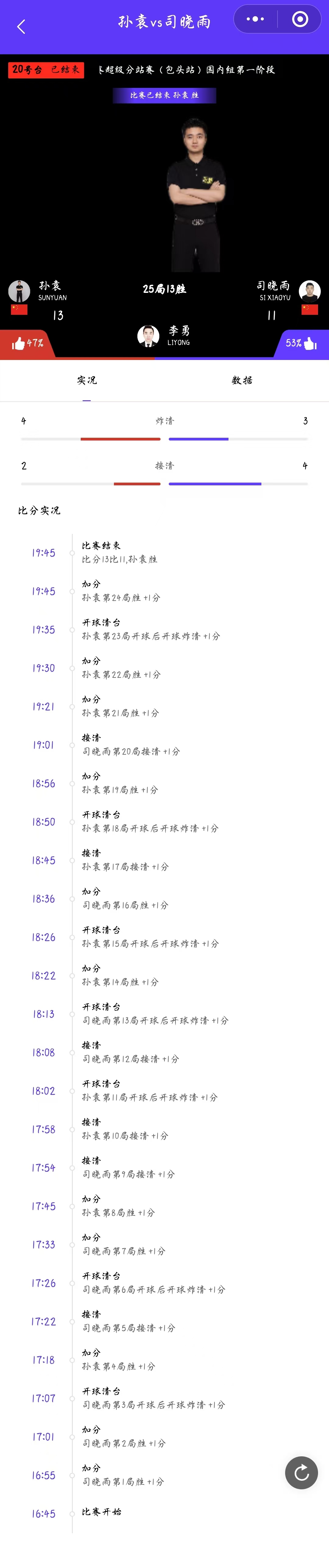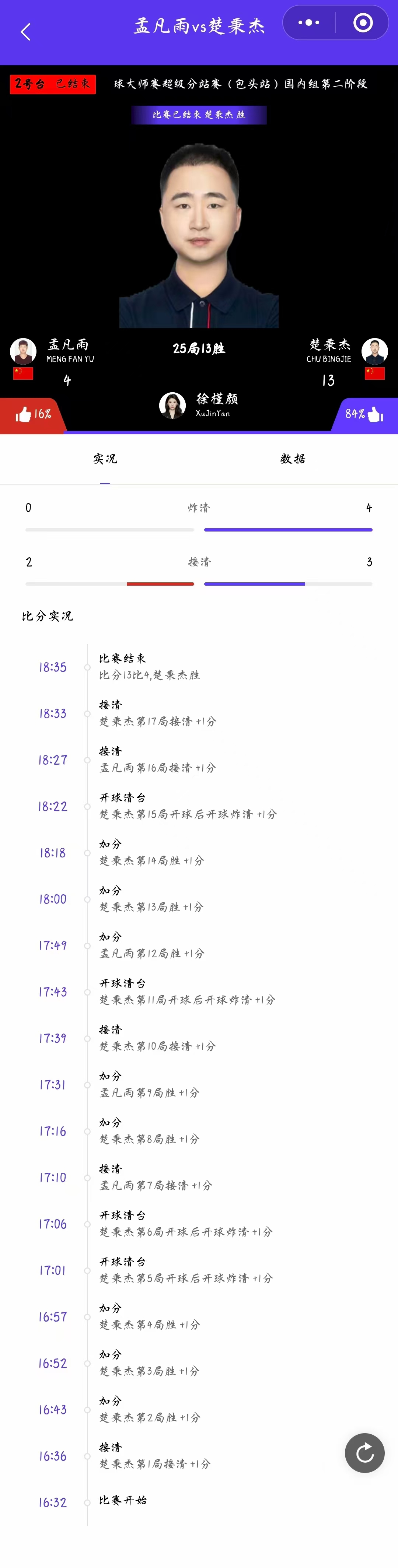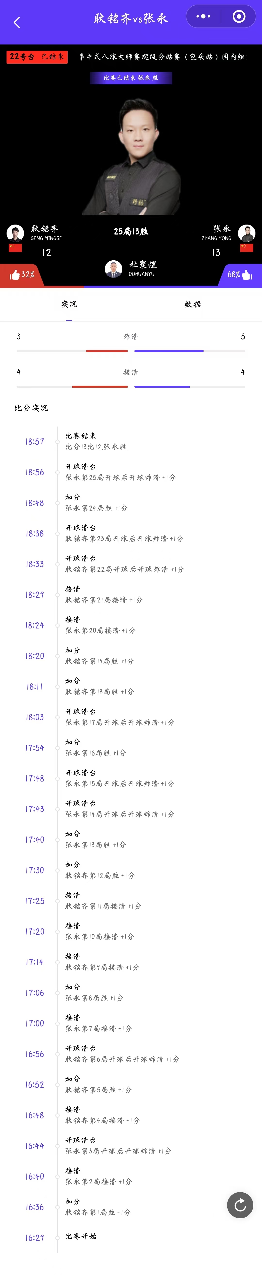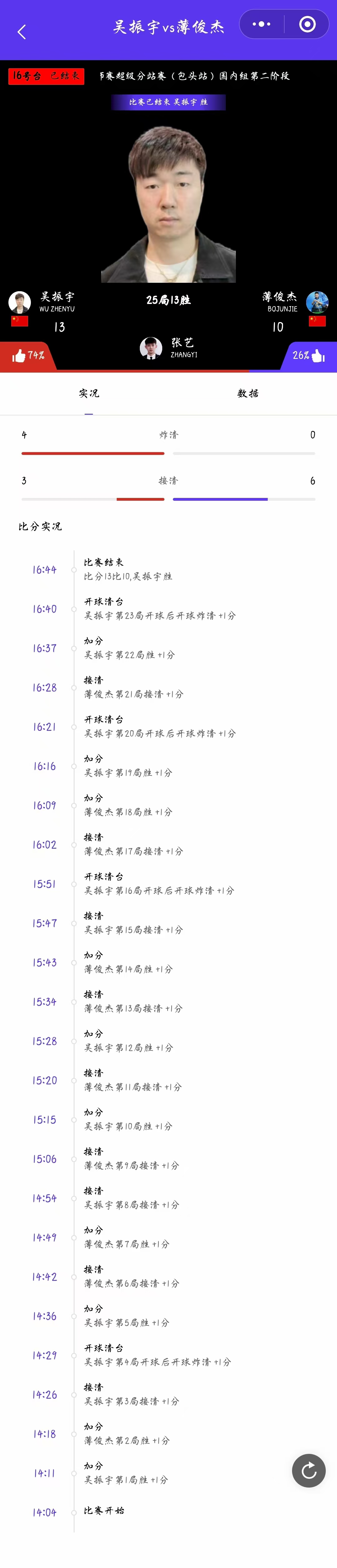 孙鹏(郑州) 13-3 赵岩昊 详情
