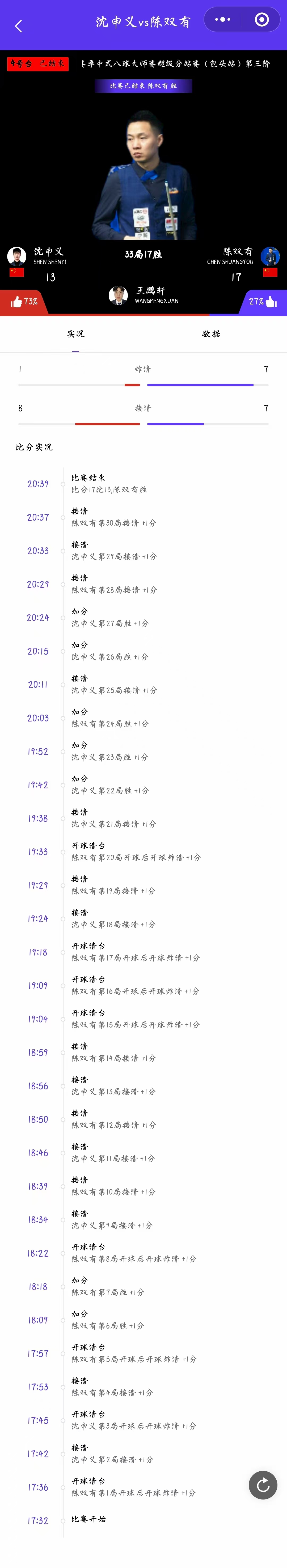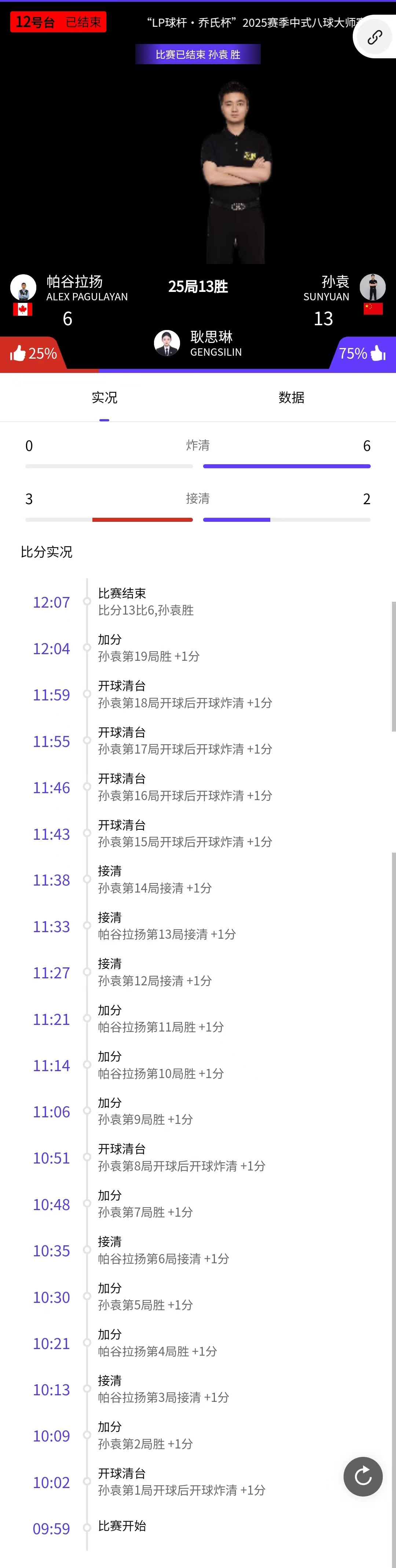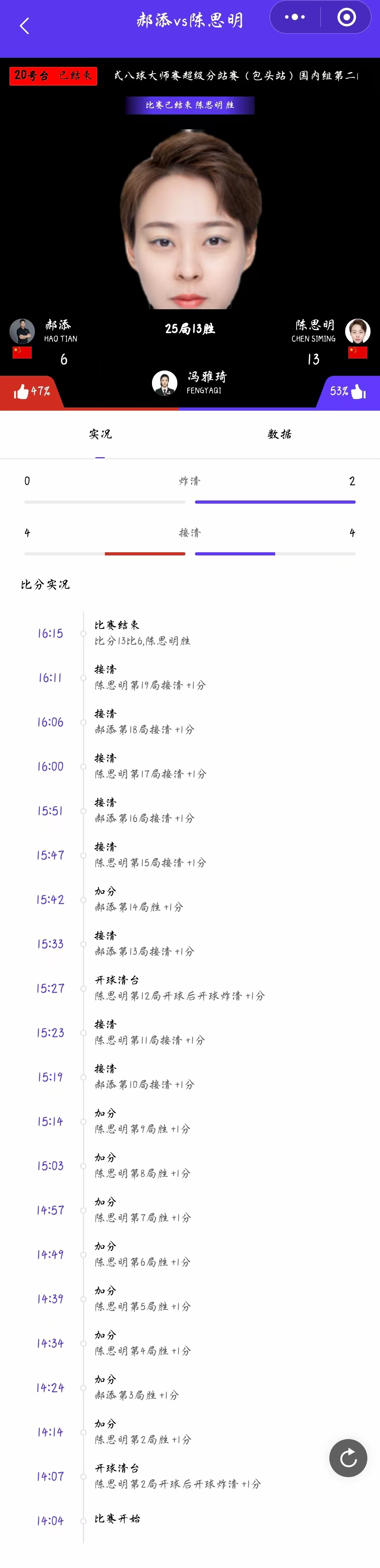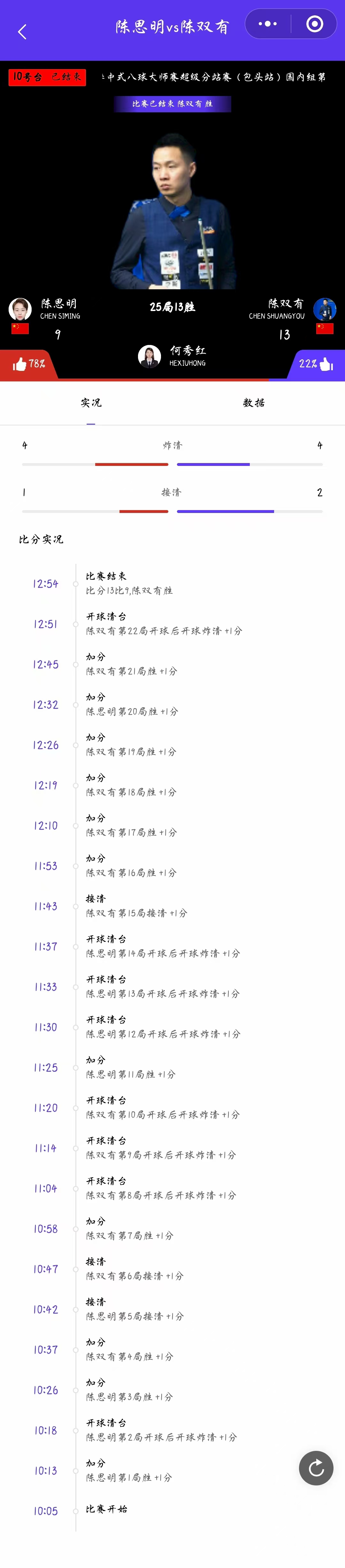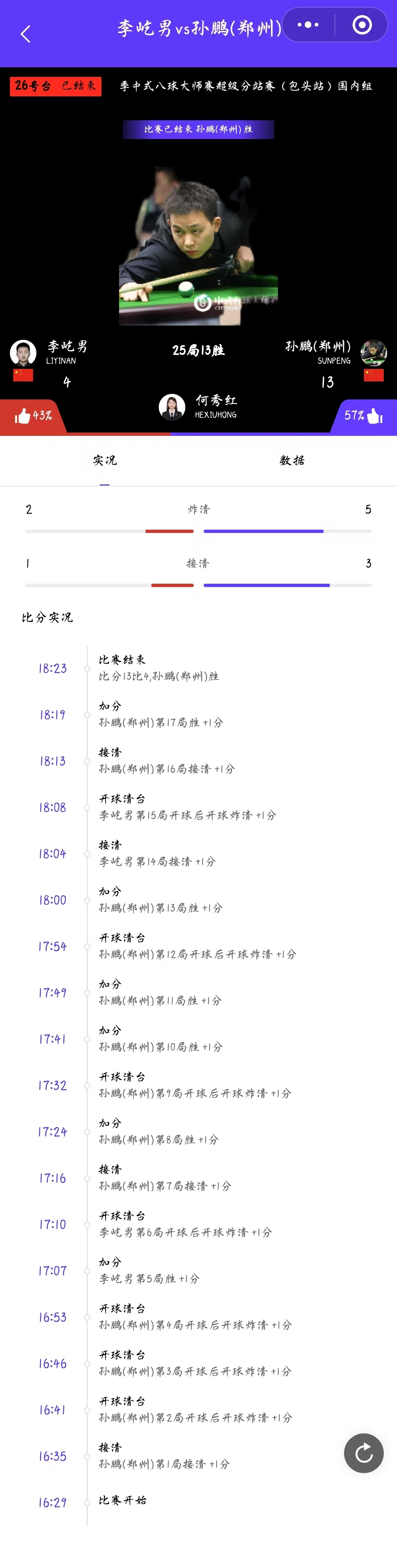 孙鹏(郑州) 13-3 赵岩昊 详情