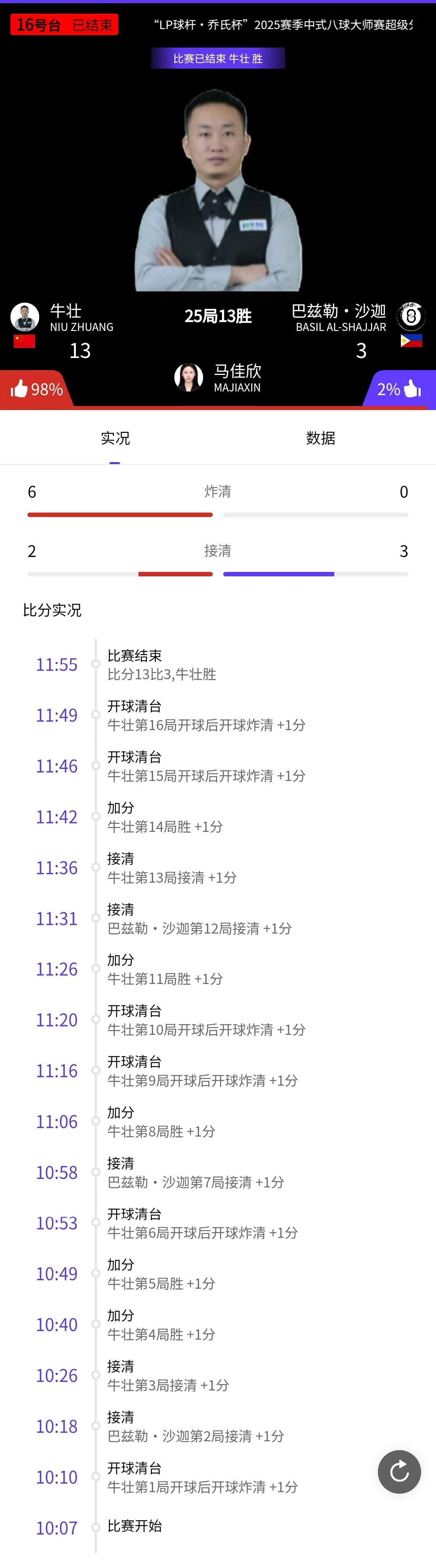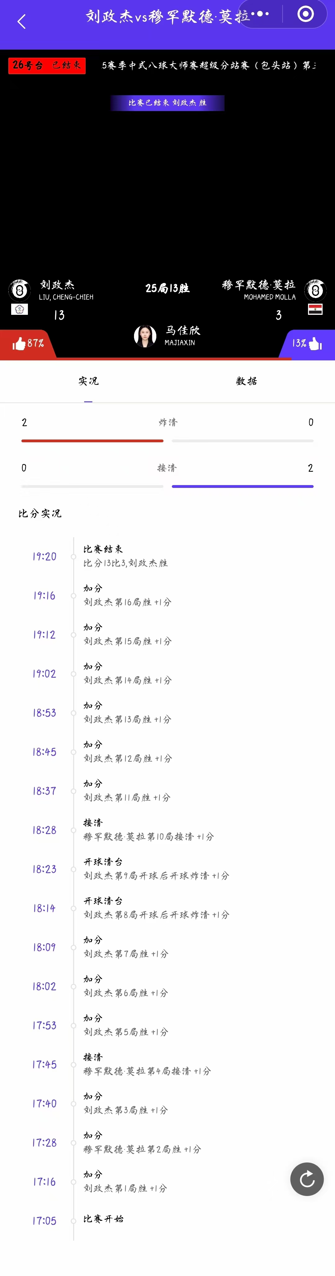 刘政杰 13-3 穆罕默德 · 莫拉 详情