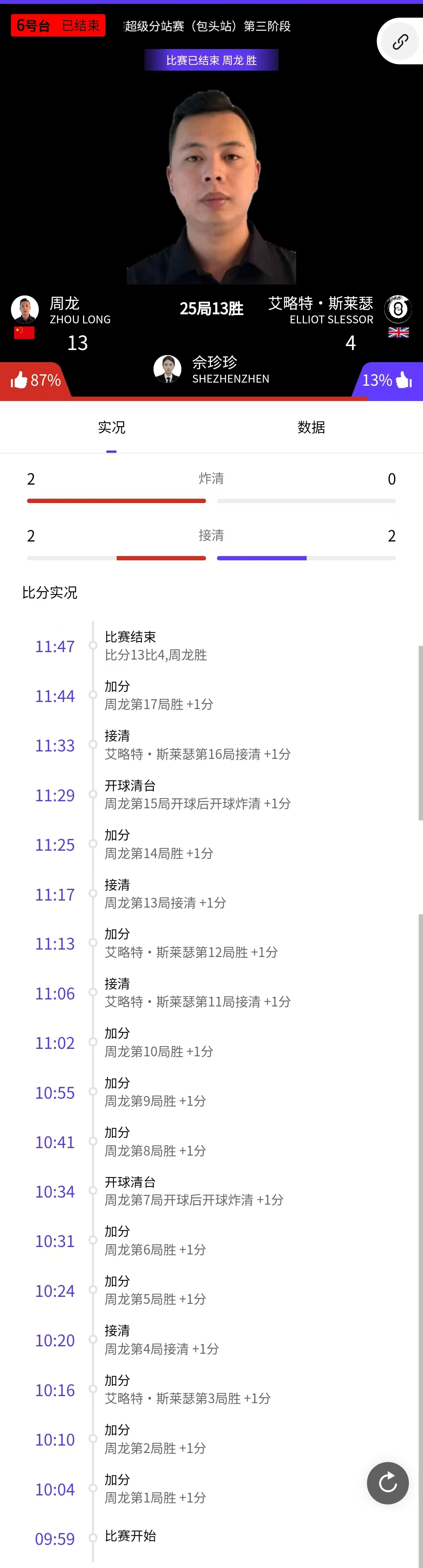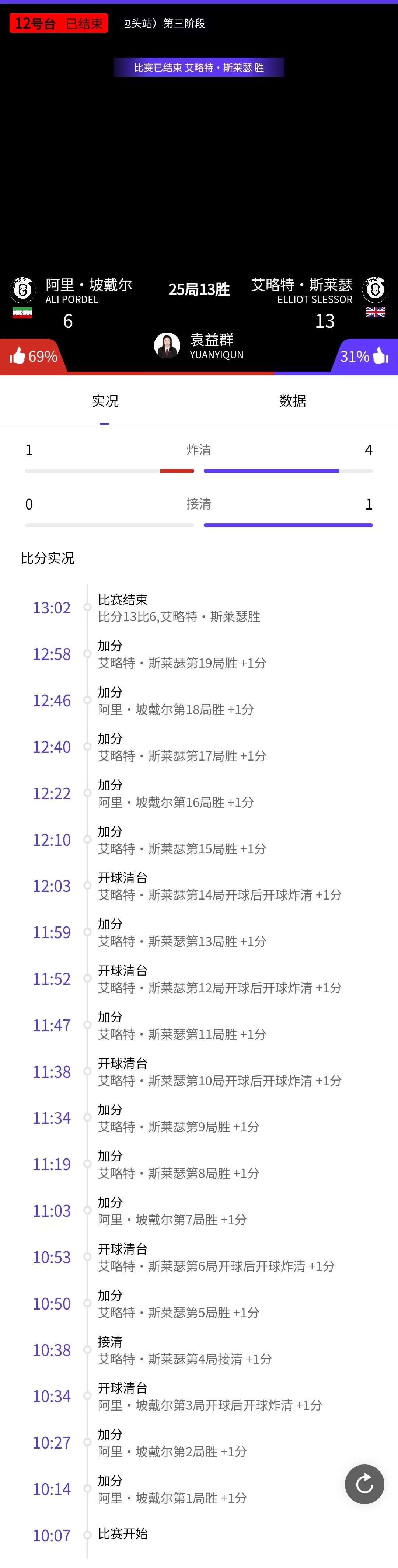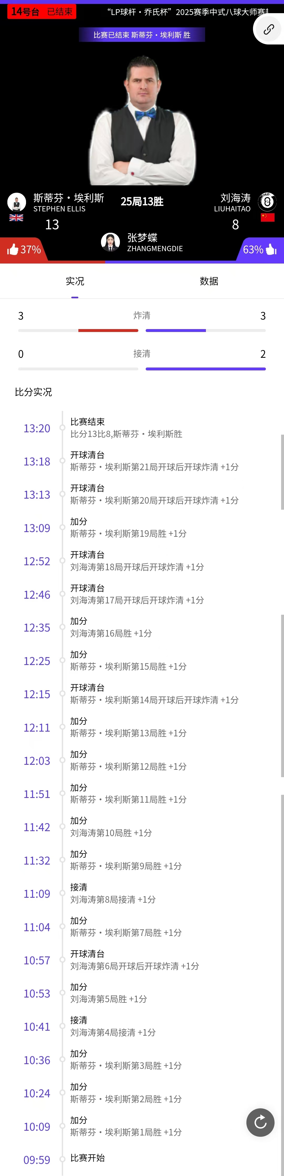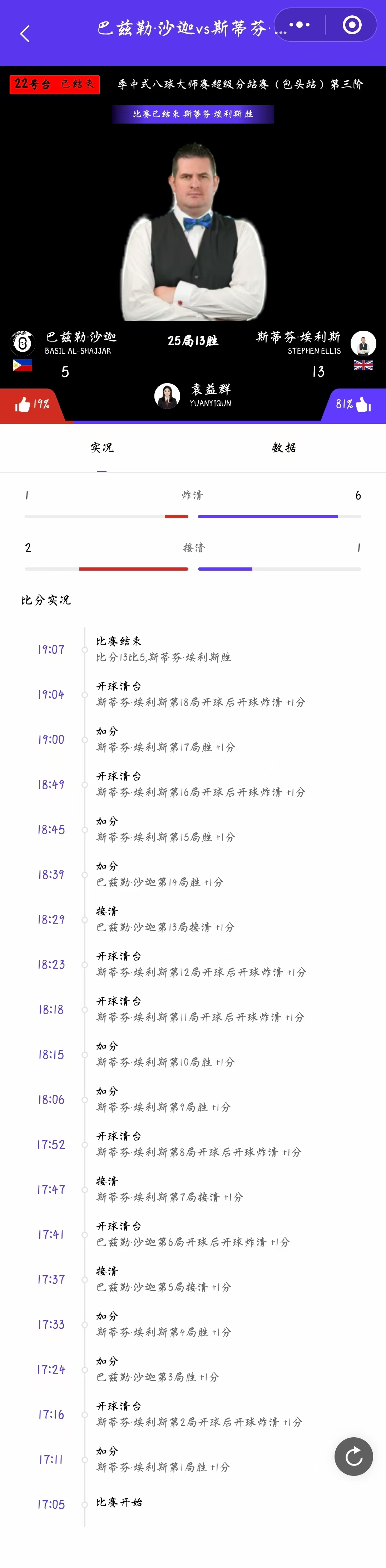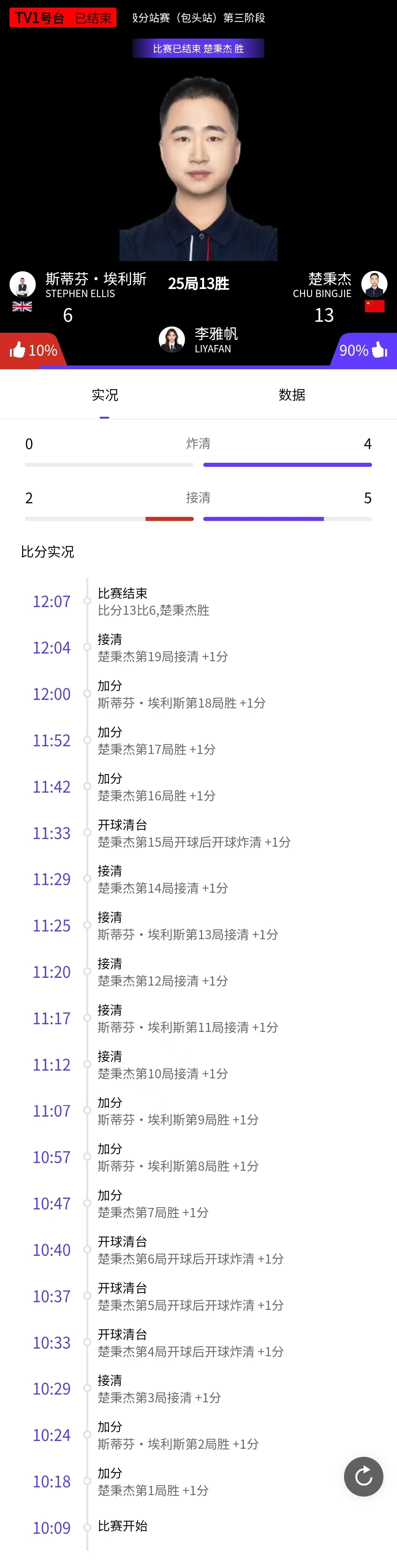 斯蒂芬·埃利斯 6-13 楚秉杰 详情
