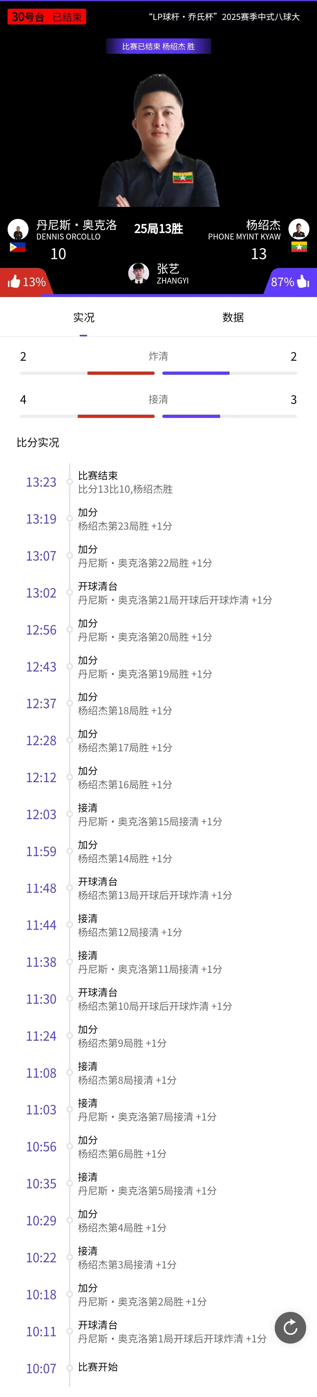 丹尼斯·奥克洛 10-13 杨绍杰 详情