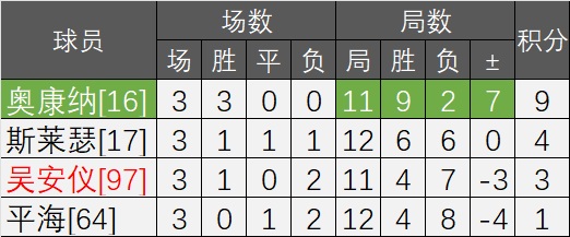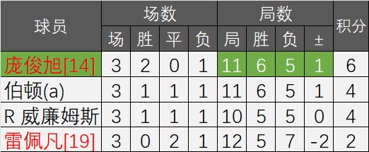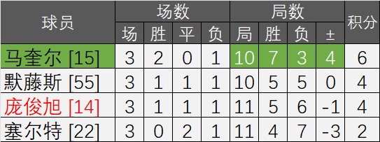 庞俊旭 [14] 3-1 马奎尔 [15]