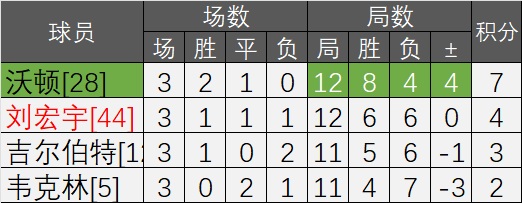 刘宏宇 [44] 3-1 吉尔伯特 [12]