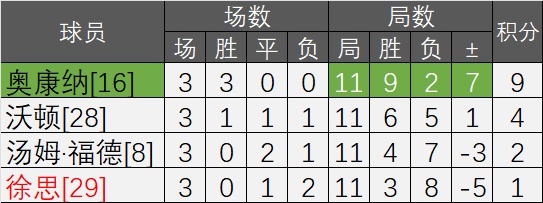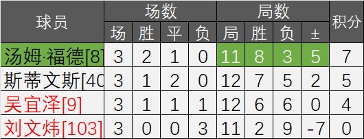 汤姆·福德 [8] 3-1 吴宜泽 [9]