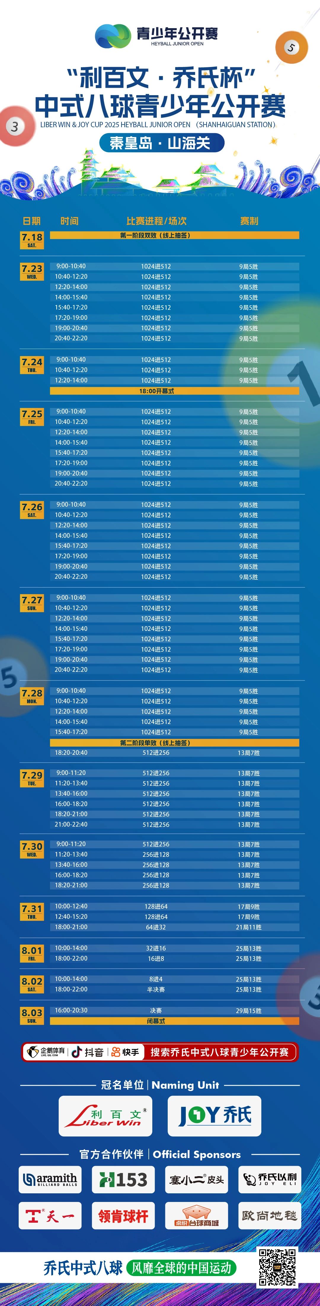 乔氏 | “利百文·乔氏杯”中八青少年公开赛·赛程表
