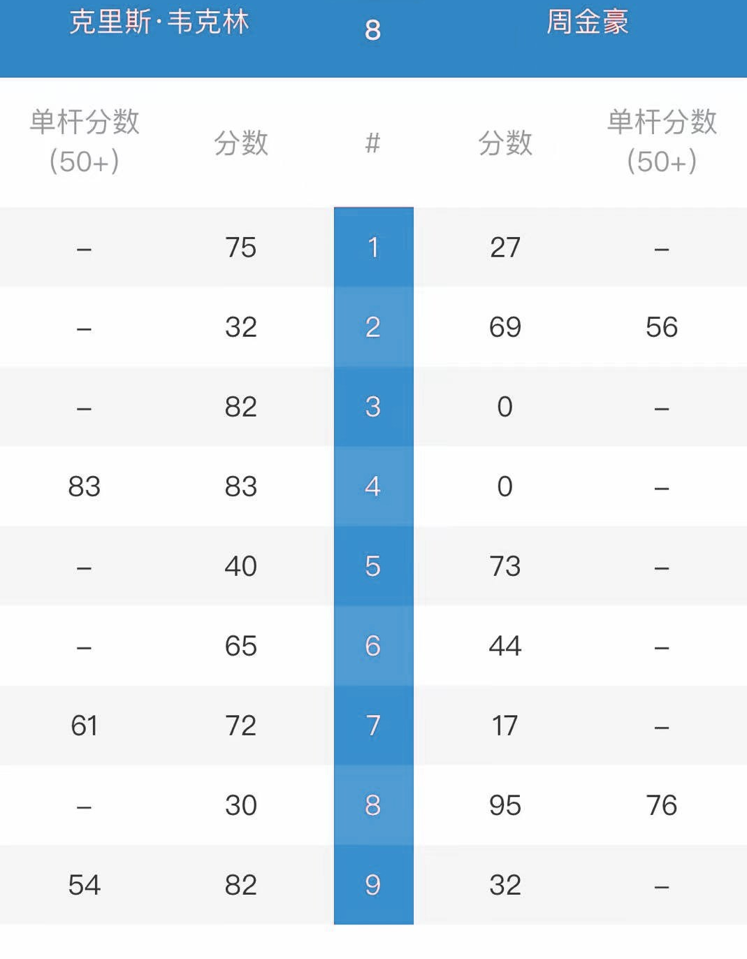 韦克林 [16] 6-3 周金豪 详情