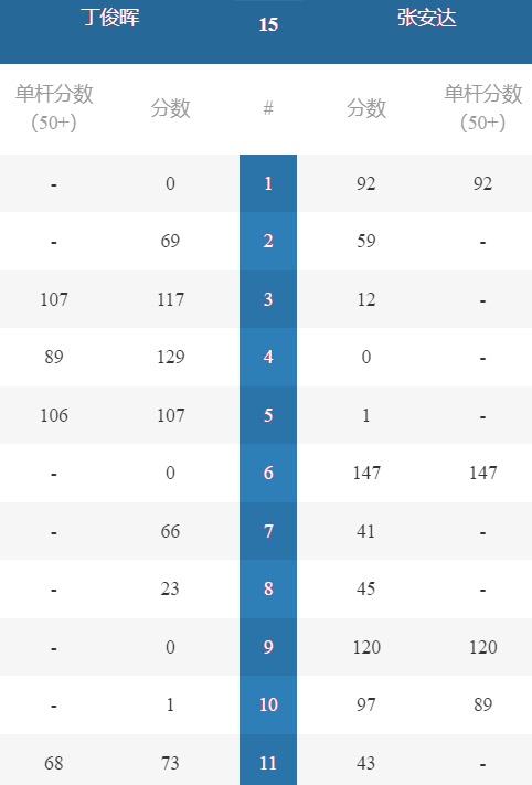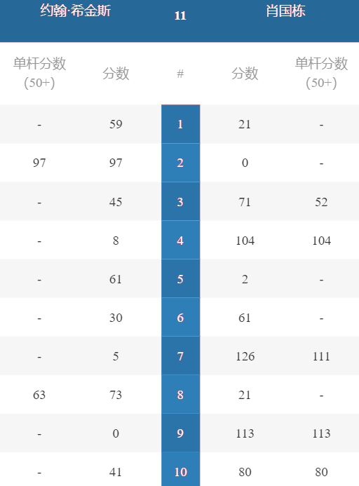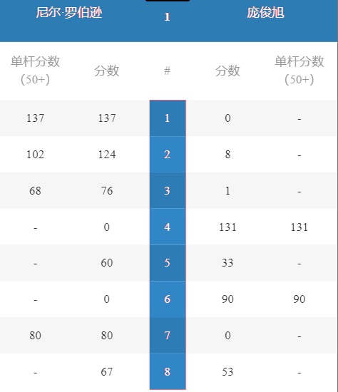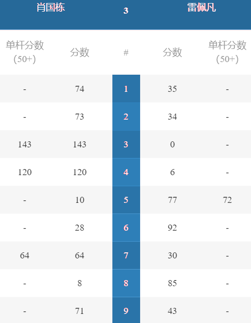 第3局肖国栋打单杆143分(当前最高分)
