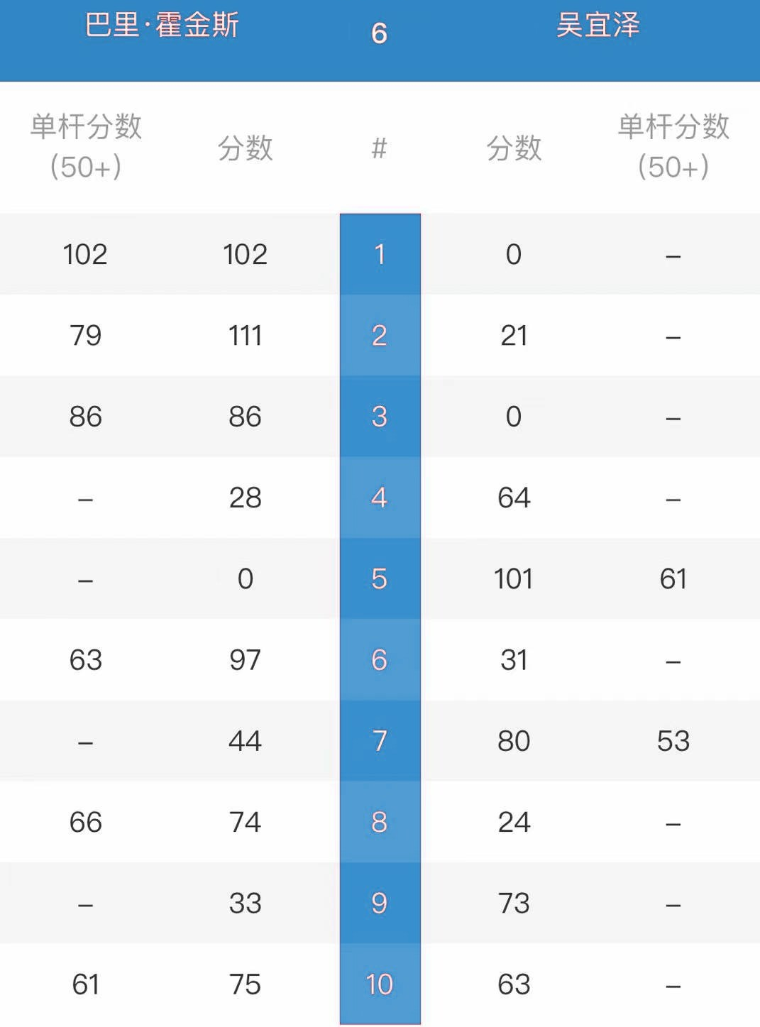 霍金斯 [10] 6-4 吴宜泽 [17] 详情