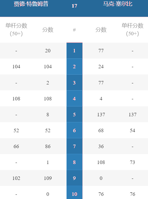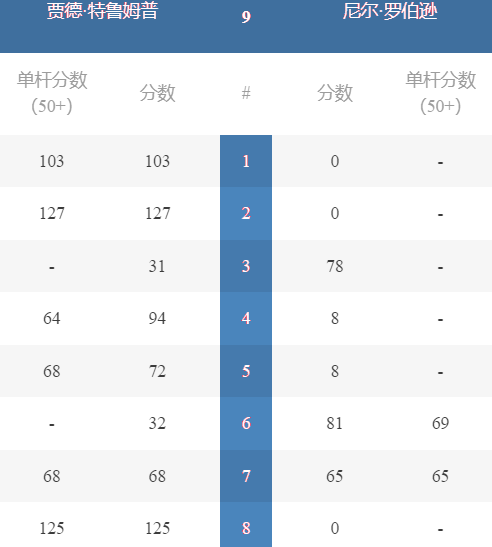 特鲁姆普 [1] 6-2 N 罗伯逊 [9] 详情