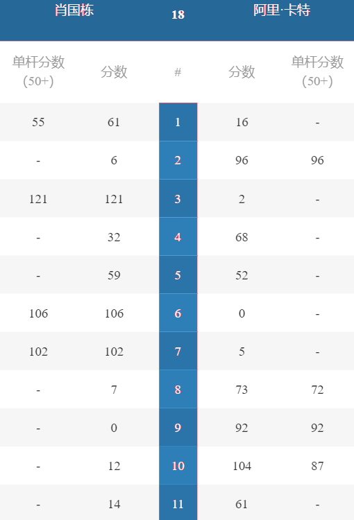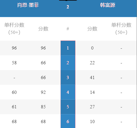 墨菲 [14] 6-0 韩富源 详情