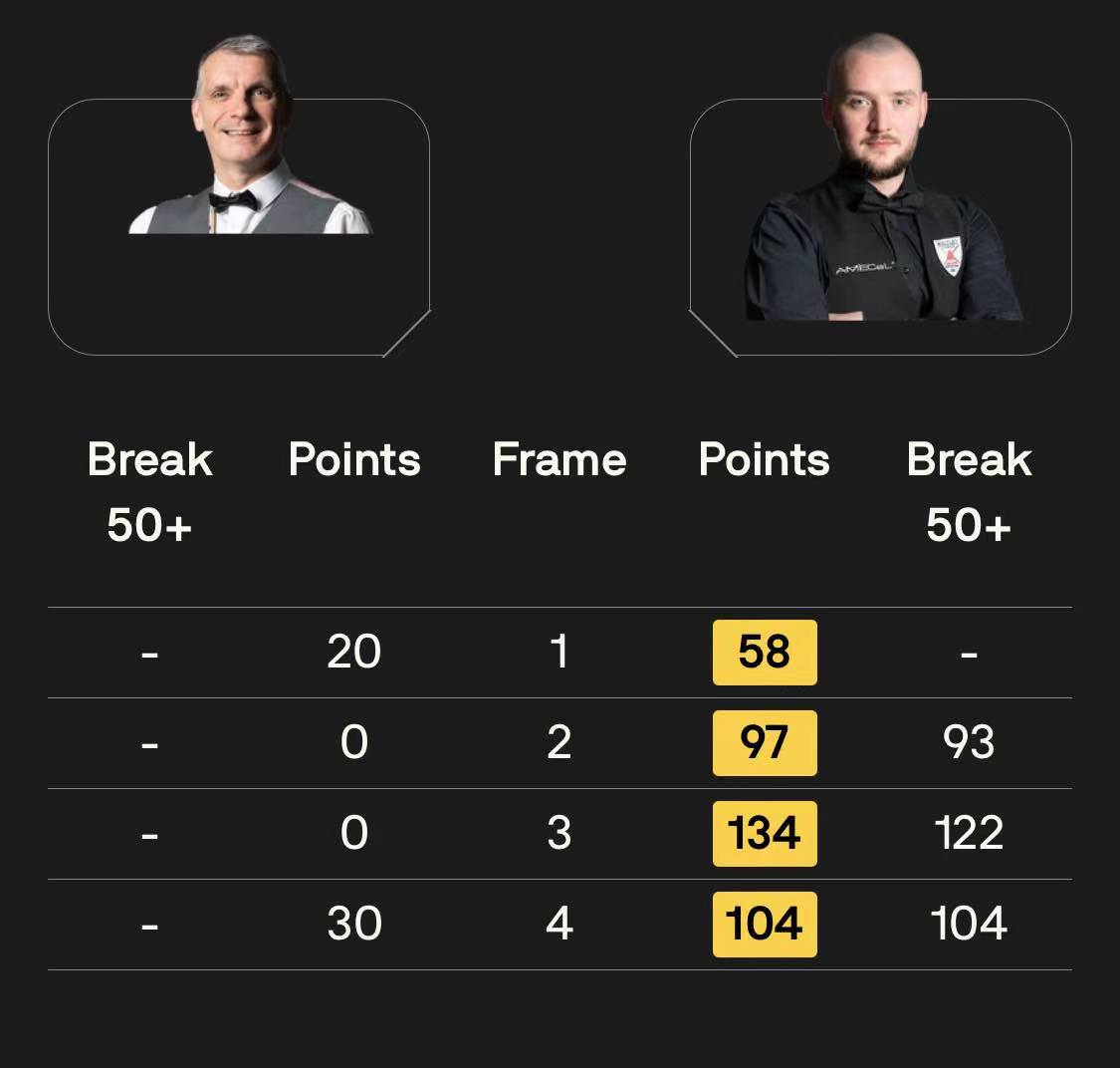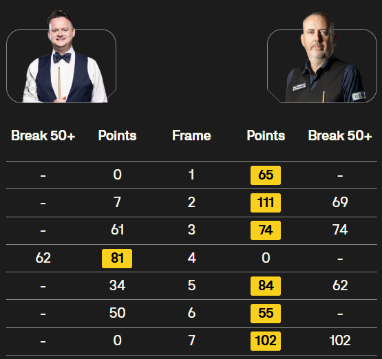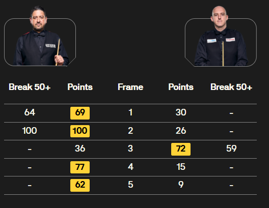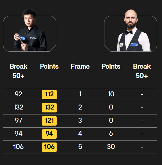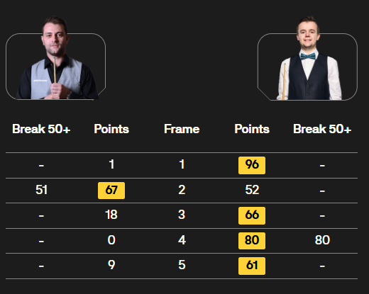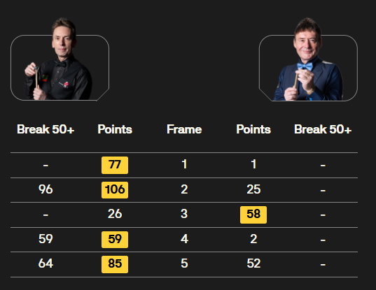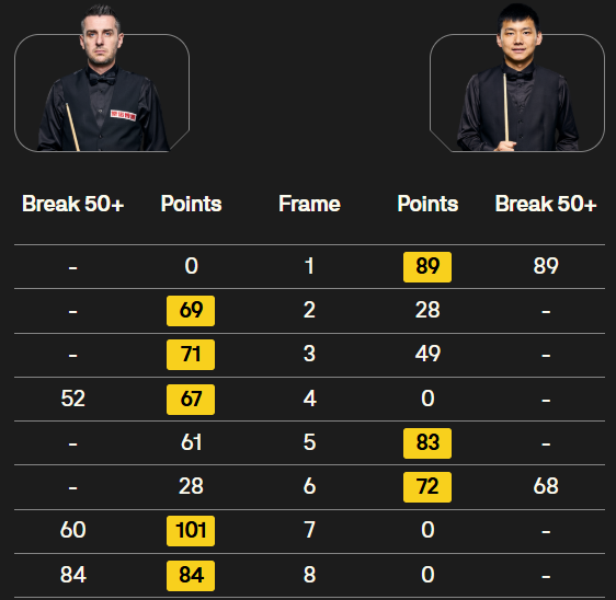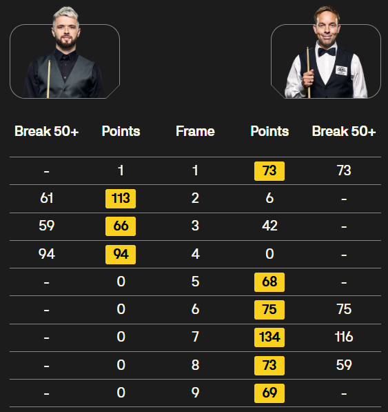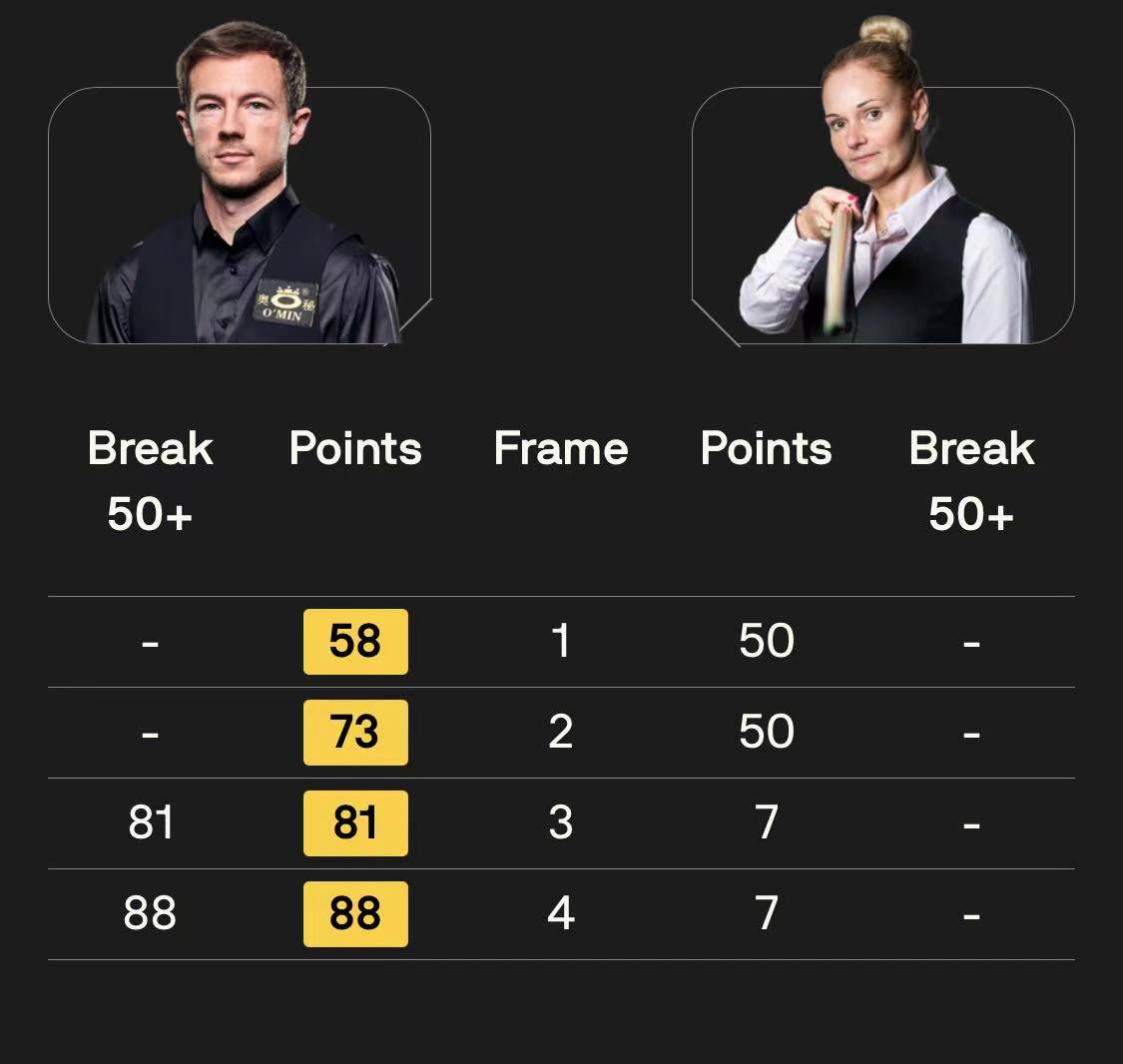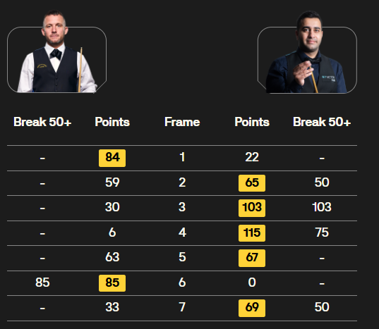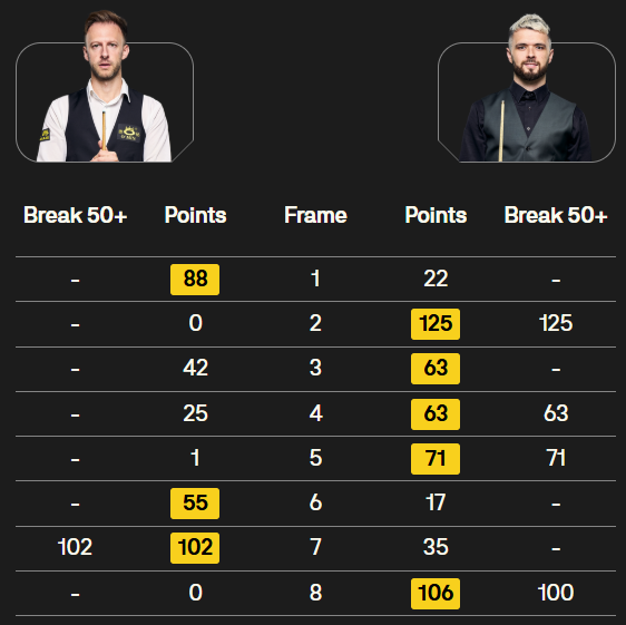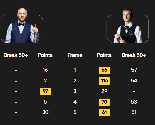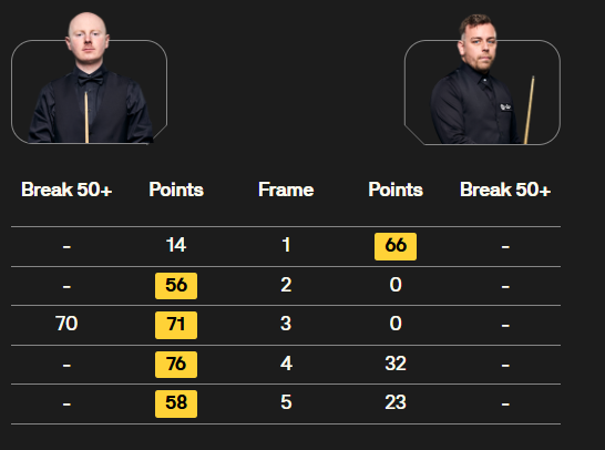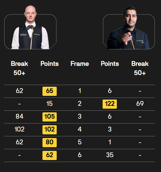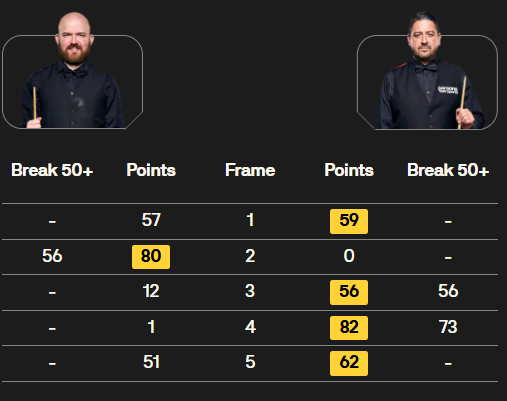 马克·塞尔比在第二局打出119分,这是他职业生涯的第900杆百分杆。他是第五位达成这一里程碑的球员。