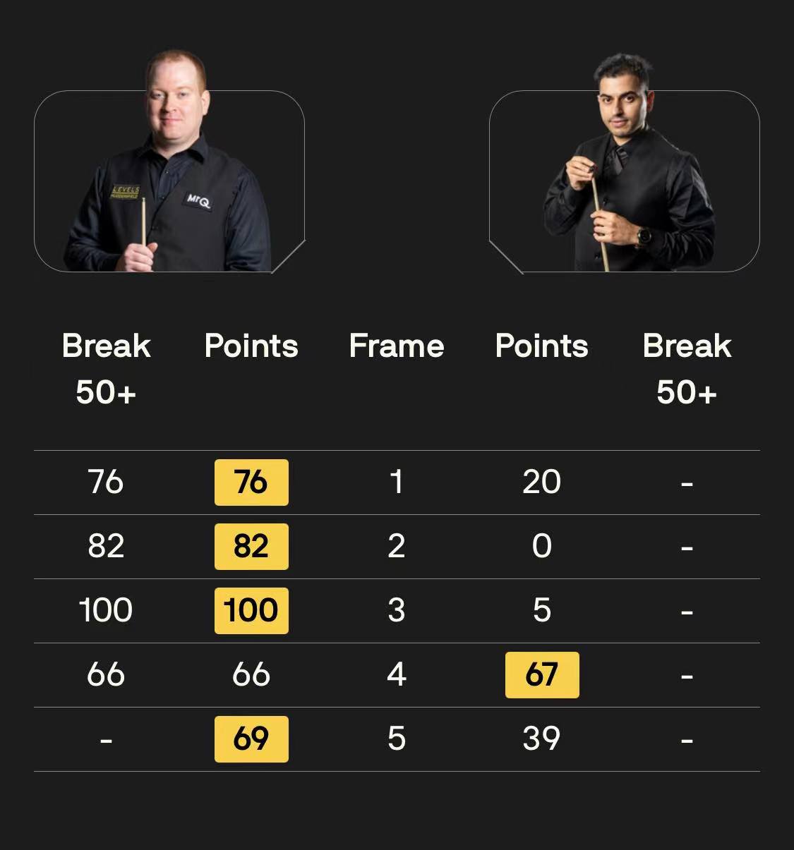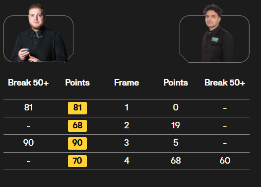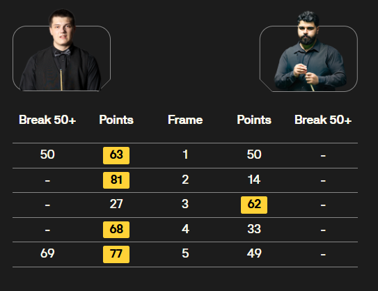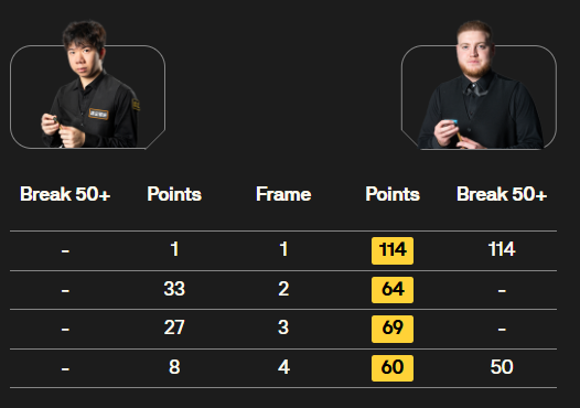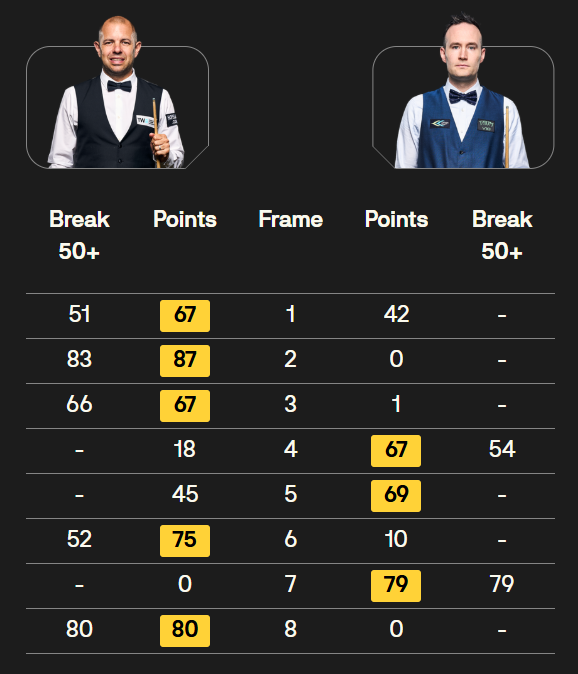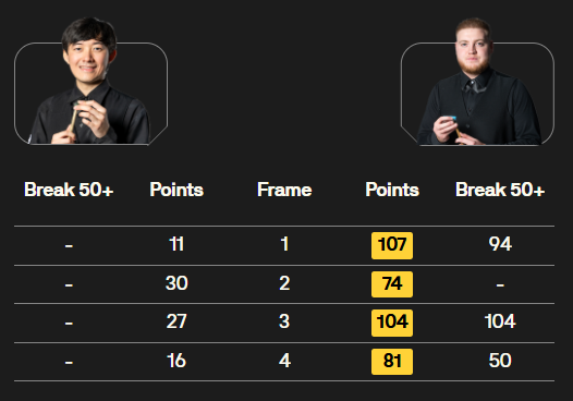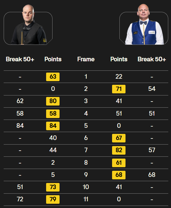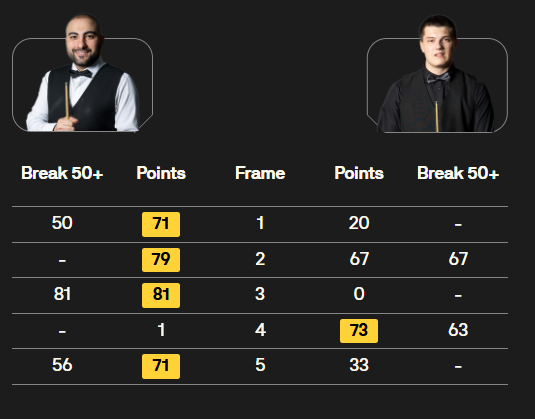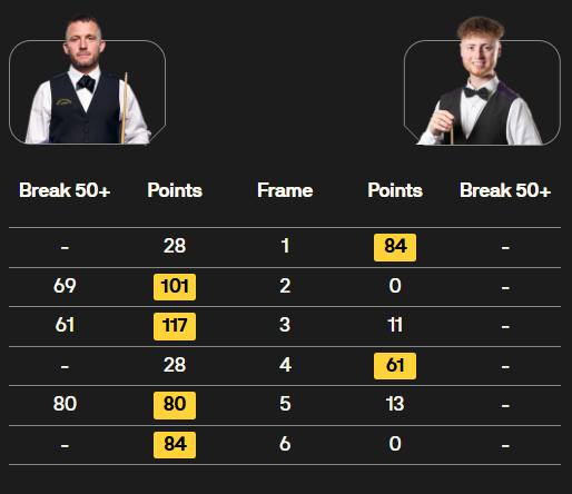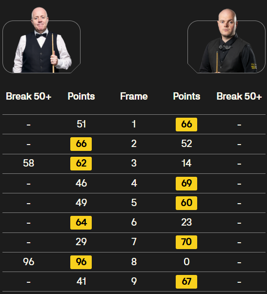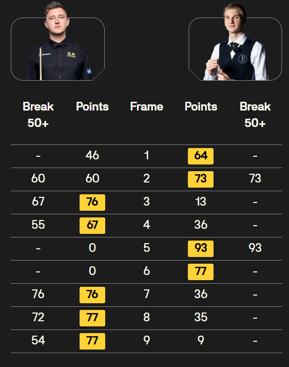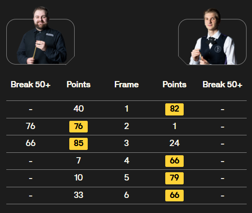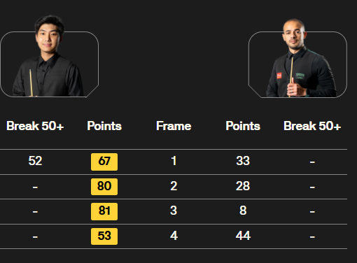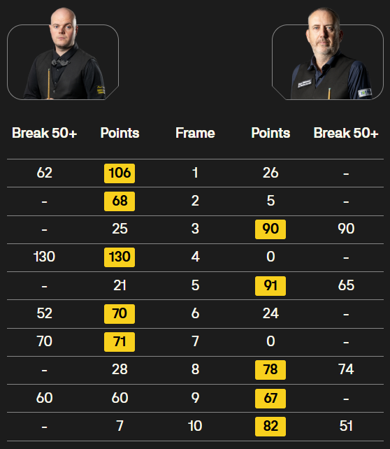 马克·塞尔比在第二局打出119分,这是他职业生涯的第900杆百分杆。他是第五位达成这一里程碑的球员。