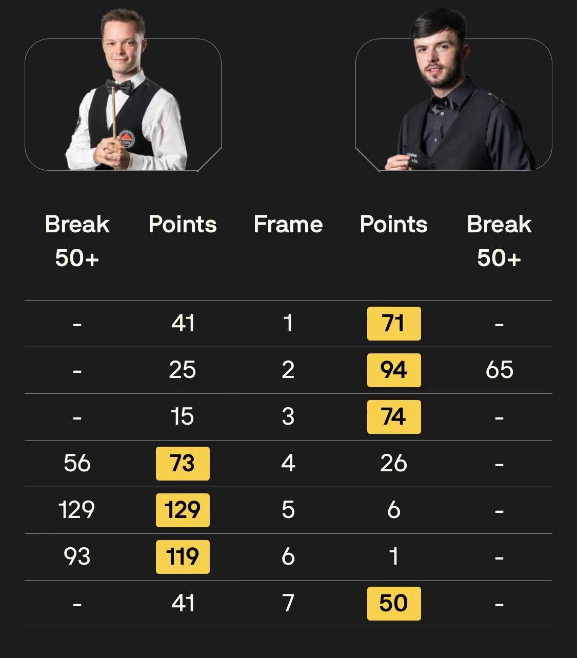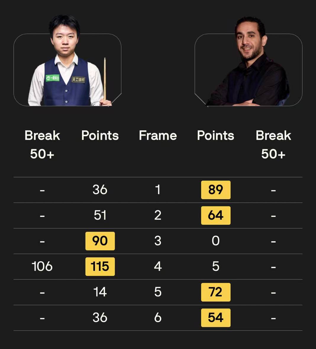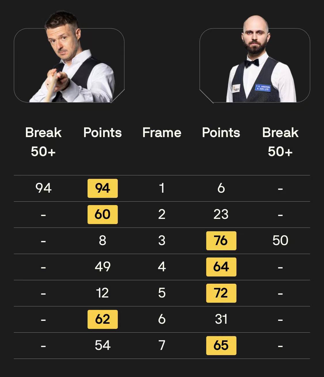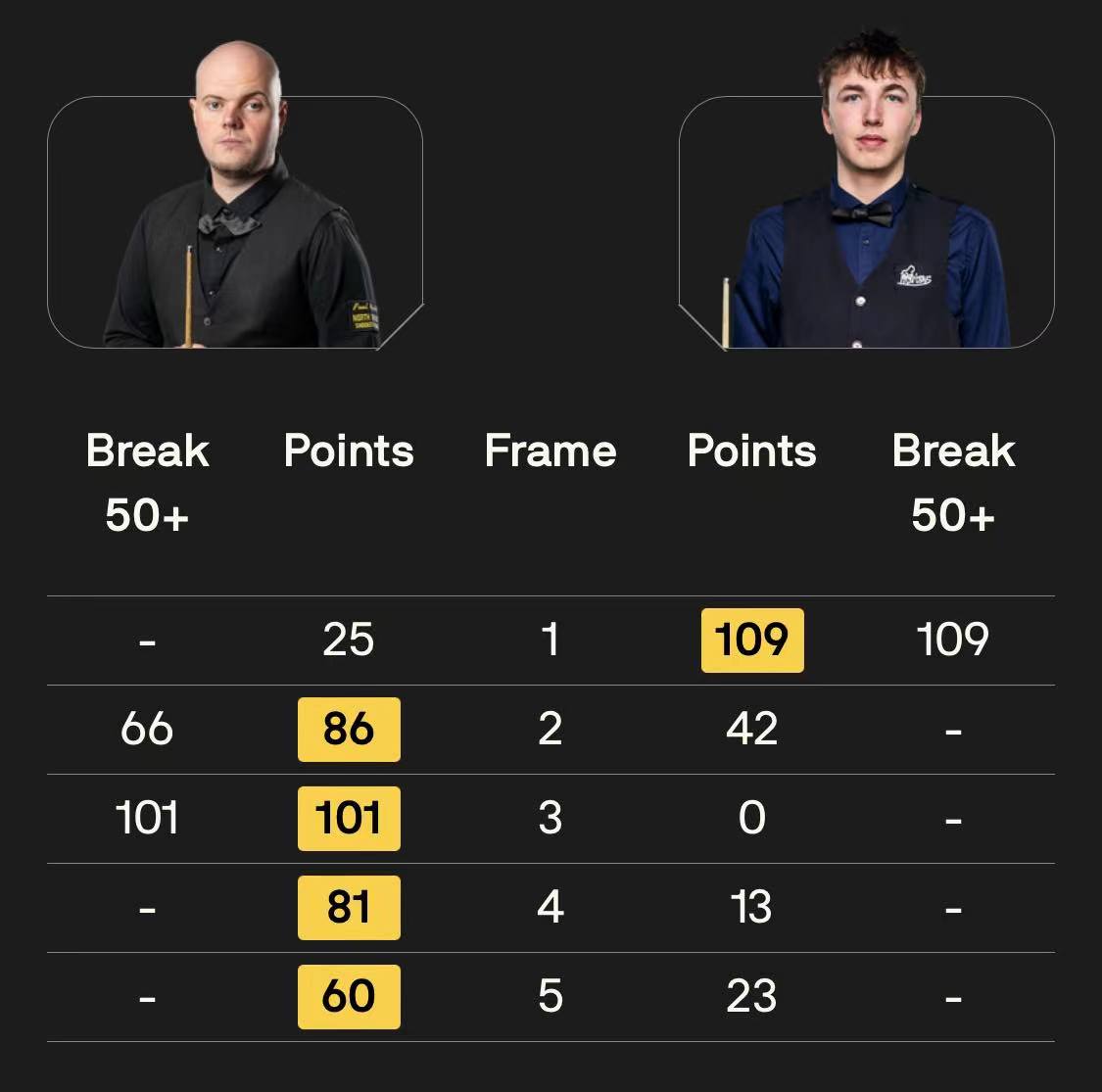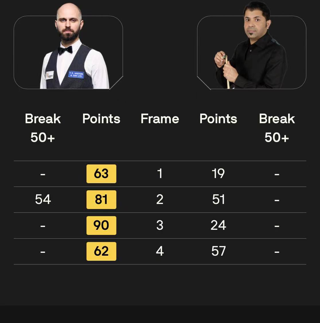 马克·塞尔比在第二局打出119分,这是他职业生涯的第900杆百分杆。他是第五位达成这一里程碑的球员。