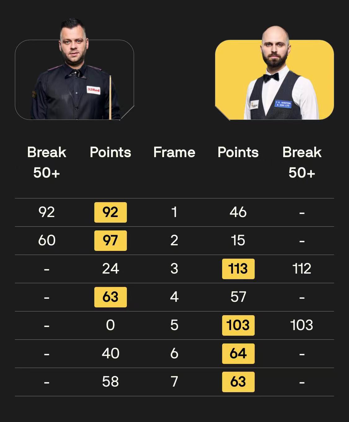 G 威尔逊[17] 5-2 A 希尔[49] 详情