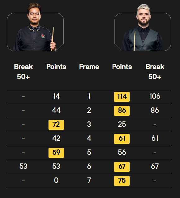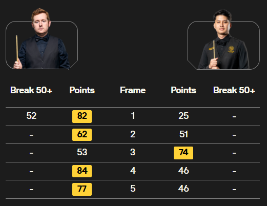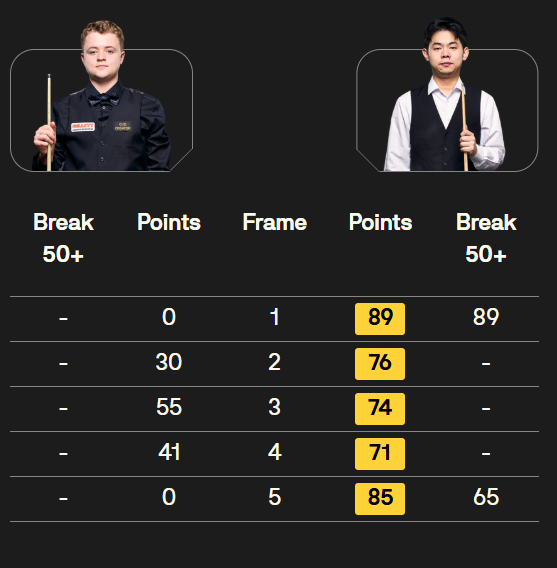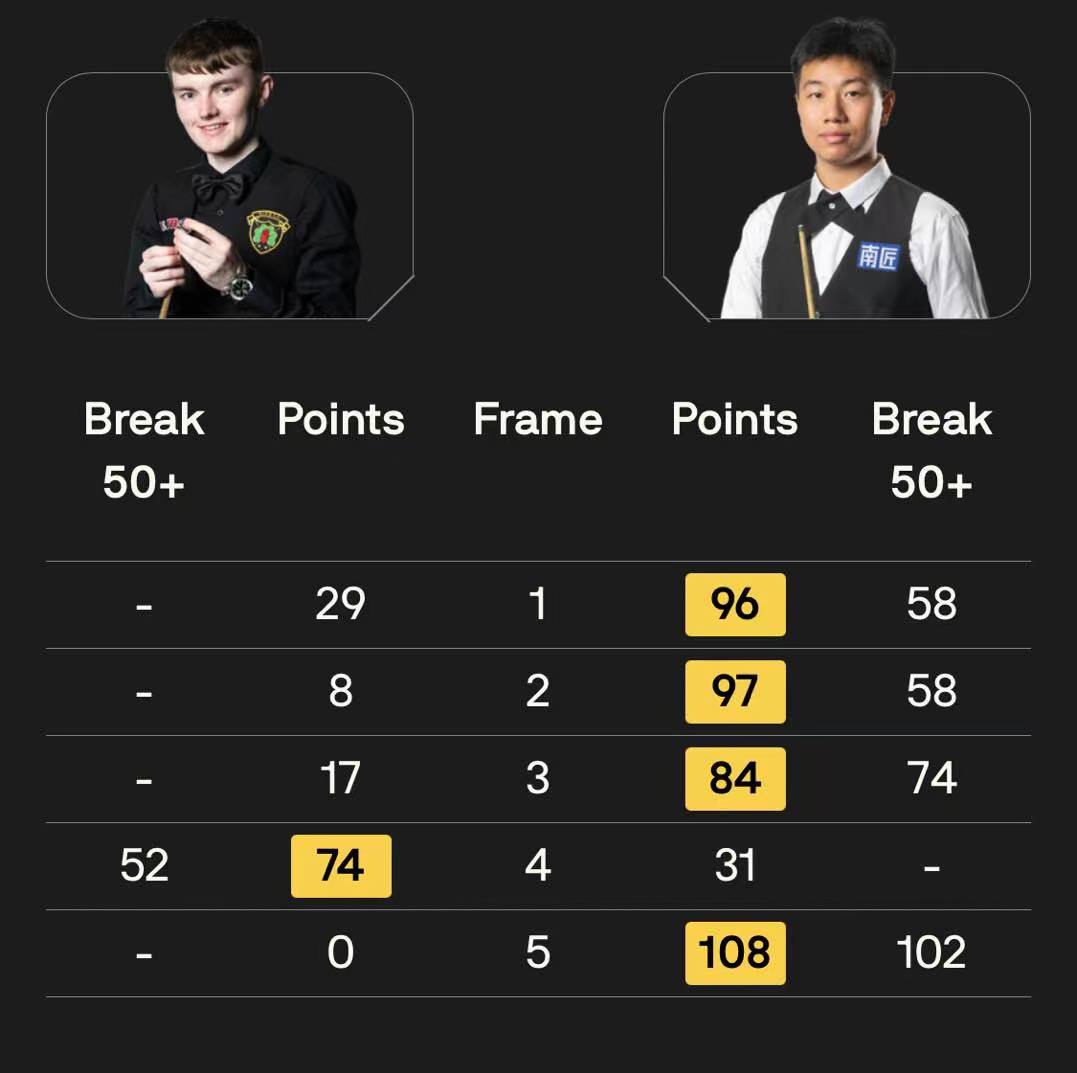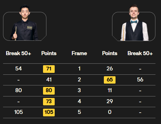 赵心童 [2] 5-0 S 霍尔沃斯[100] 详情