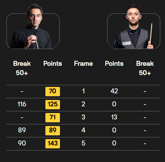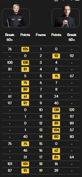 R 奥沙利文 [6] 5-0 J 奥康纳[27] 详情