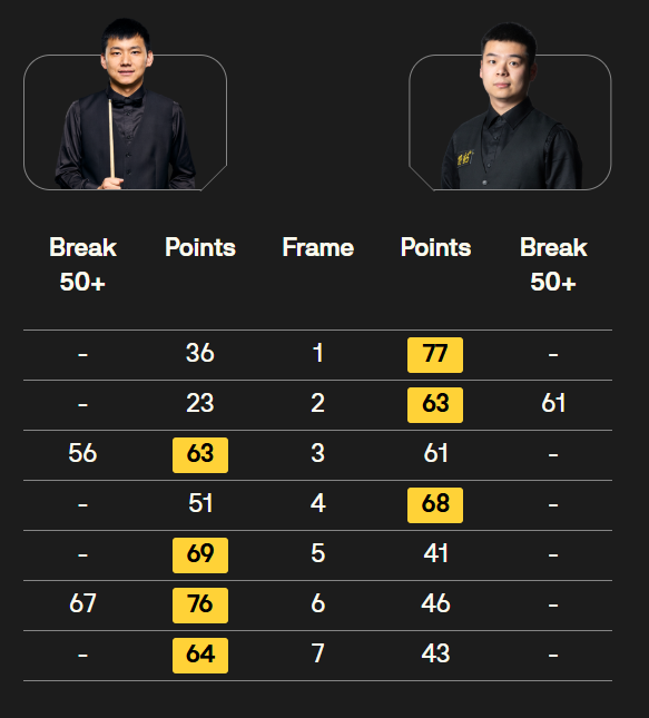 丁俊晖 [7] 5-2 S 马奎尔[26] 详情