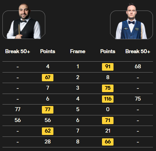 S 霍尔沃斯 [100] 4-0 Omar Alajlani (a) 详情
