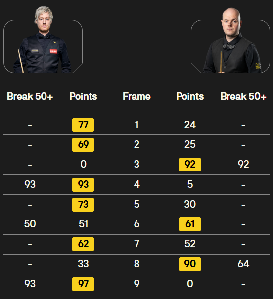 N 罗伯逊 [9] 6-2 R 奥沙利文 [6] 详情