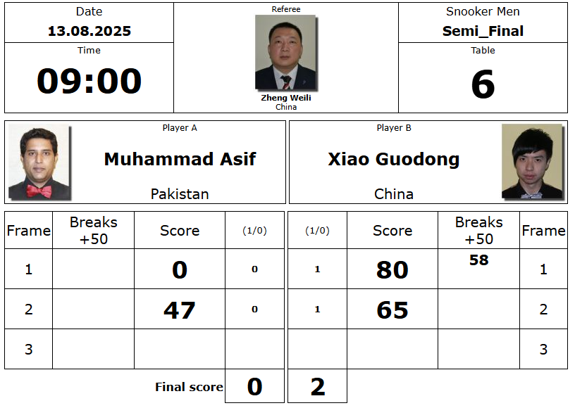 肖国栋 2-0 Muhammad Asif (a) 详情