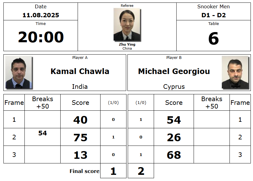 Michael Georgiou (a) 2-1 Kamal Chawla (a) 详情