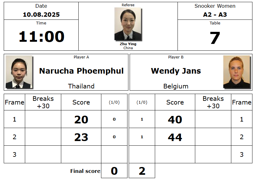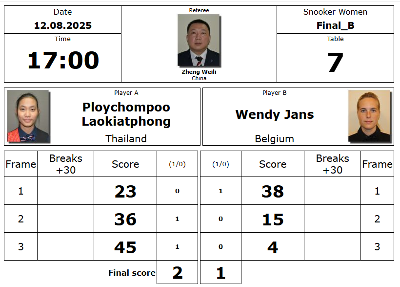 P Laokiatphong (af) 2-1 Wendy Jans (af) 详情