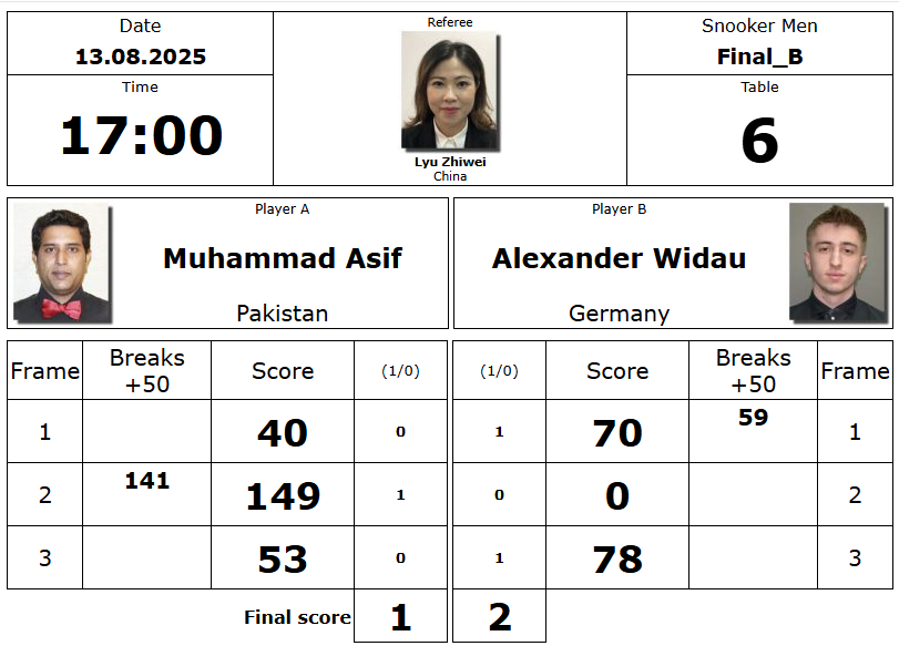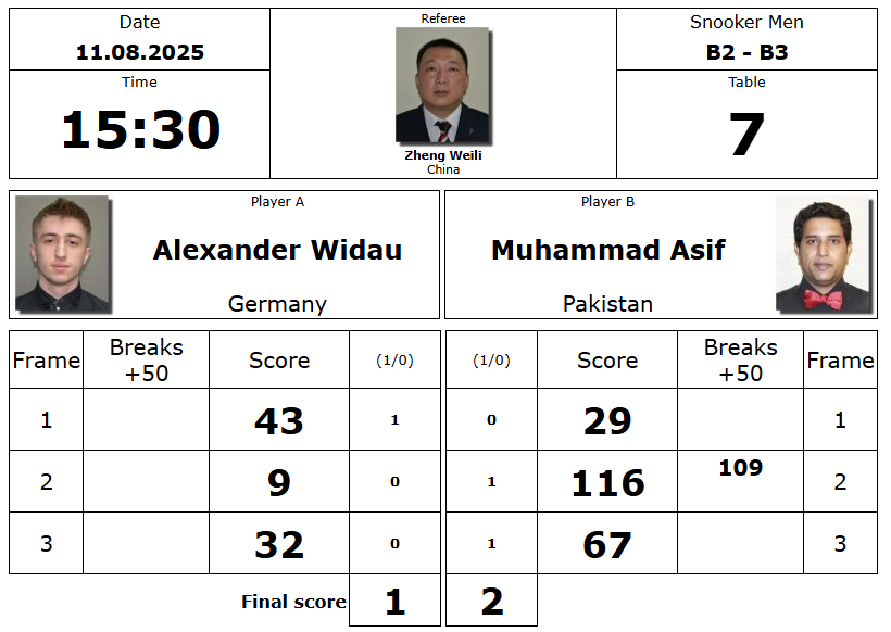 Muhammad Asif (a) 2-1 Alexander Widau (a) 详情