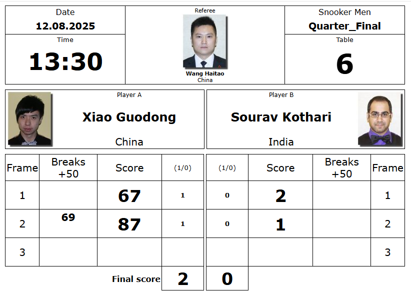 肖国栋 2-0 Sourav Kothari (a) 详情