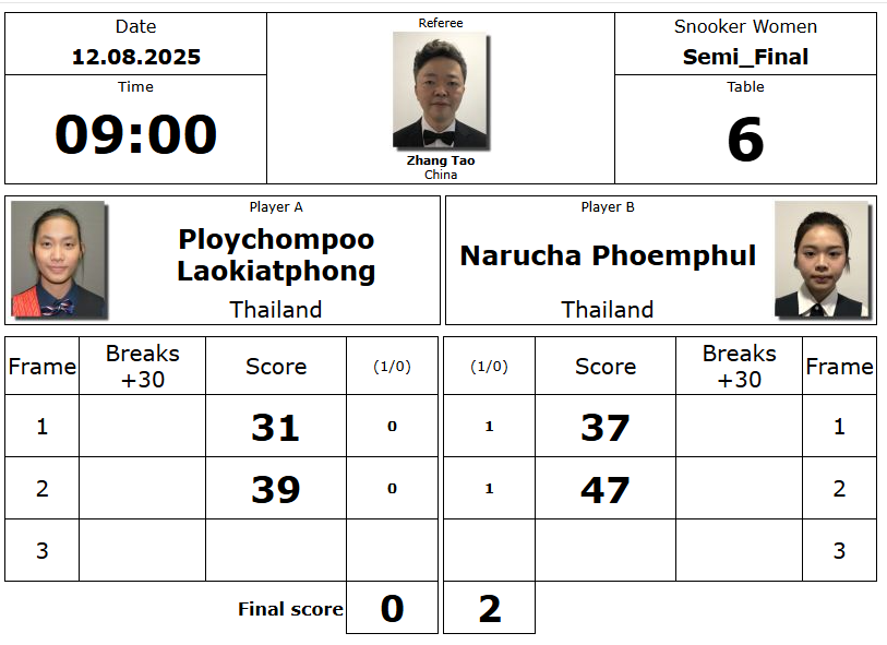 Narucha Phoemphul (af) 2-0 P Laokiatphong (af) 详情