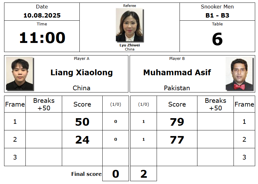 Muhammad Asif (a) 2-0 梁小龙 详情