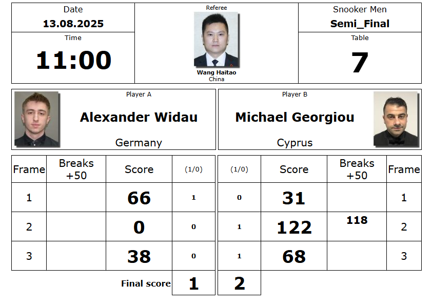 Michael Georgiou (a) 2-1 Alexander Widau (a) 详情