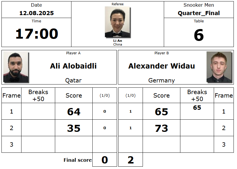 Alexander Widau (a) 2-0 Ali Alobaidli (a) 详情