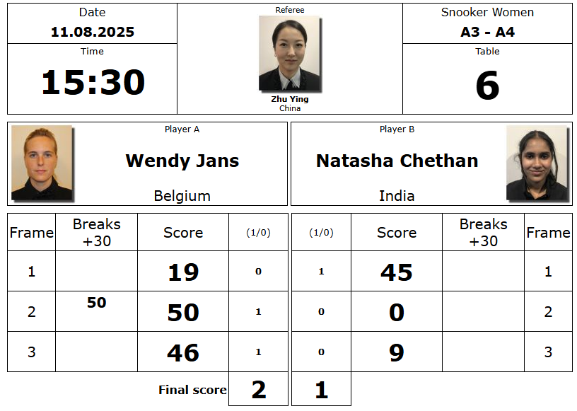 Wendy Jans (af) 2-1 Natasha Chethan (af) 详情
