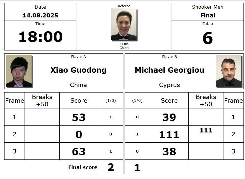 肖国栋 2-1 Michael Georgiou (a) 详情