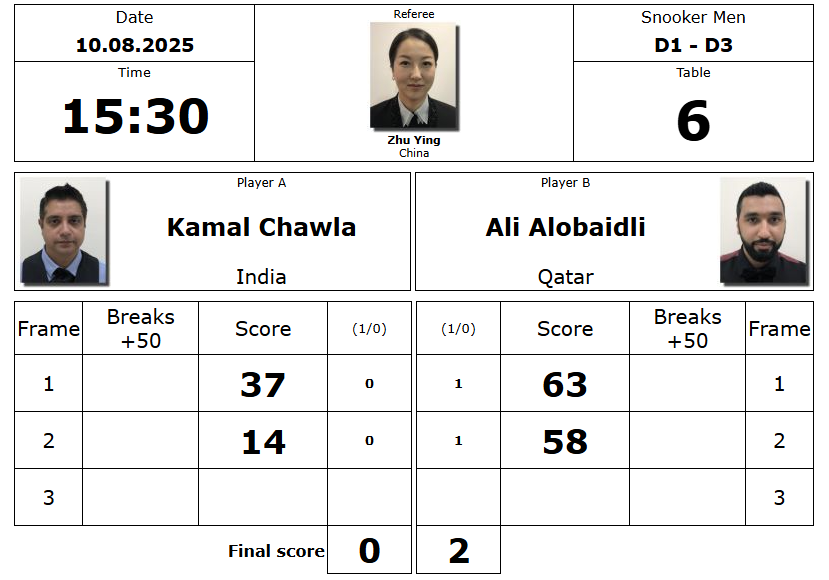 Ali Alobaidli (a) 2-0 Kamal Chawla (a) 详情