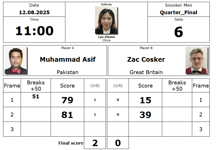 Muhammad Asif (a) 2-0 Zac Cosker (a) 详情