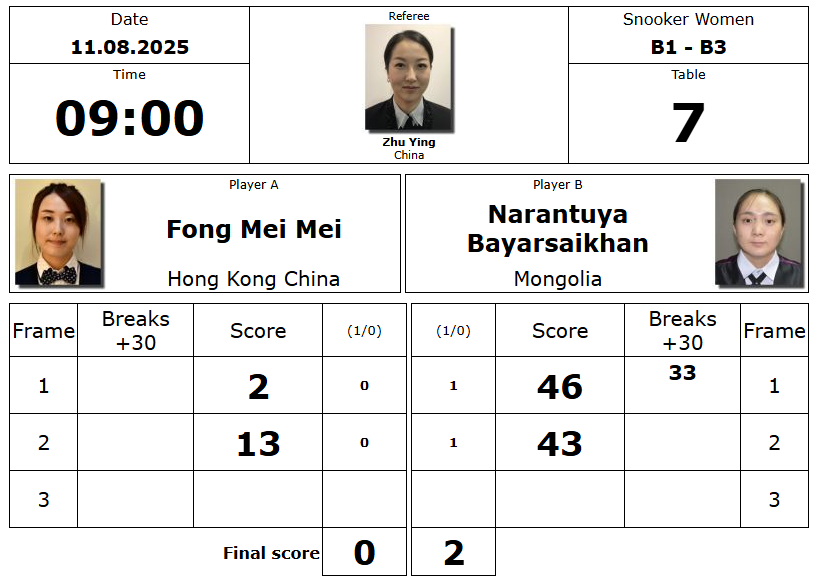 Narantuya Bayarsaikhan (af) 2-0 房薇薇 (af) 详情