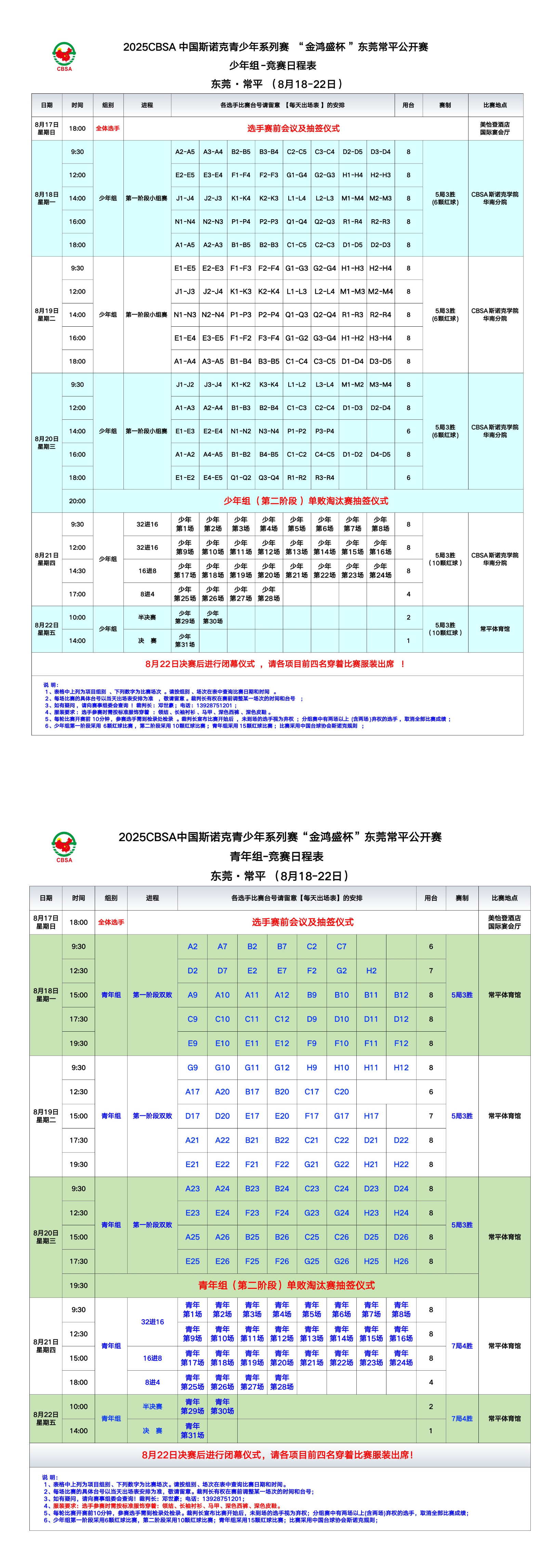 【2025年8月】CBSA中青赛东莞常平站·赛程表