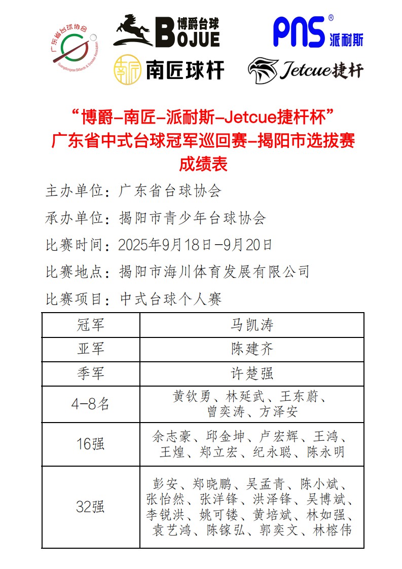 【地方赛事】 广东省中式台球冠军巡回赛·赛事专题