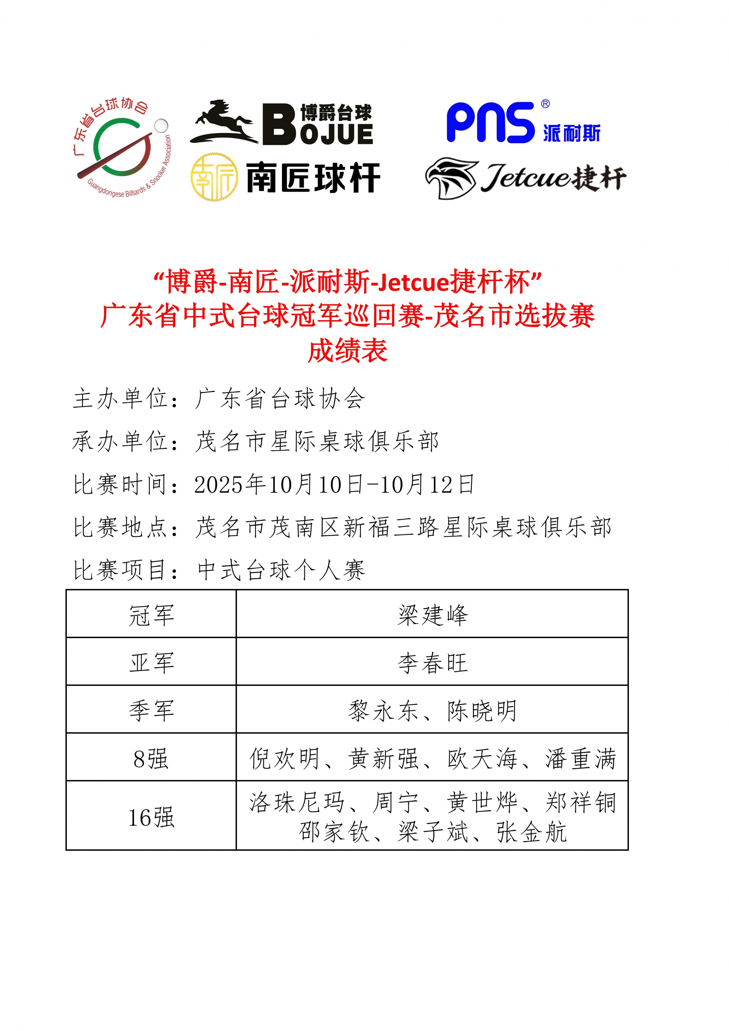 【地方赛事】 广东省中式台球冠军巡回赛·赛事专题